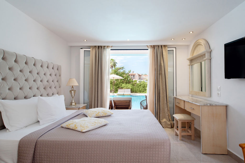 * Ligging * In het centrum van Kavos * Gelegen aan het privéstrand * Ligbedden met matrasjes * Parasol * Dichtstbijzijnde winkel op circa 100 meter * Dichtstbijzijnde restaurant op circa 100 meter * Dichtstbijzijnde bar op circa 100 meter * Arkoudilas Monastry Panagia op circa 3,5 kilometer * Lefkimmi op circa 8 kilometer * Bushalte op circa 100 meter * Algemeen & faciliteiten * Adults Only (minimumleeftijd 16 jaar) * 3 gebouwen * Maximaal 3 verdiepingen * 88 kamers * Receptie * 24 uur per dag * Lobby * Lift * Niet in elk gebouw een lift * Bagageruimte * Wifi in alle openbare ruimtes * Doktersservice tegen betaling * op aanvraag * Tuin * Privé parkeergelegenheid * Restaurants & bars * Buffetrestaurant * Drinkgelegenheden * Beachbar * Activiteiten & ontspanning * Fitness * Spafaciliteiten * Massages tegen betaling * Schoonheidsbehandelingen tegen betaling * Animatie voor volwassenen * 7 keer per week * Shows * Livemuziek * 7 keer per week * Zwembaden * 5 buitenzwembaden * Zonneterras * Ligbedden met matrasjes * Parasol * Badhanddoekenservice gratis met borg * Verzorging * Logies & Ontbijt * Ontbijt in buffetvorm * Halfpension * Ontbijt in buffetvorm * Diner in buffetvorm * All Inclusive * Ontbijt in buffetvorm (08.00-10.30 uur) * Lunch in buffetvorm (12.30-14.30 uur) * Diner in buffetvorm (19.00-21.00 uur) * Snacks (14.30-18.30 uur) * Koffie, thee & koekjes * IJs * Selectie lokale (non-)alcoholische drankjes (12.00-21.00 uur) * Tegen betaling: dineren in het à-la-carterestaurant en import drankjesHotelkamers * 2-persoonskamer Bijgebouw DX1 * Oppervlakte van circa 20 m² * In het bijgebouw * Airconditioning * Kluisje * Televisie * Telefoon tegen betaling * Eet- en drinkfaciliteiten * Koffie- en theefaciliteiten * Minibar * Bij aankomst gevuld met water * Badkamer douche, toilet, föhn, badjassen (op aanvraag) en badslippers (op aanvraag) * Wifi * Balkon of terras (zitje) * Gemakkelijke toegang tot het gedeelde zwembad * 2-persoonskamer Standaard Landzicht DZL * Oppervlakte van circa 22 m² * Bergzicht * Airconditioning * Kluisje * Televisie * Telefoon tegen betaling * Eet- en drinkfaciliteiten * Koffie- en theefaciliteiten * Minibar * Bij aankomst gevuld met water * Badkamer douche, toilet, föhn, badjassen (op aanvraag) en badslippers (op aanvraag) * Wifi * Balkon of terras (zitje) * 2-persoonskamer Standaard Zeezicht DZM * Oppervlakte van circa 25 m² * Zeezicht * Airconditioning * Kluisje * Televisie * Telefoon tegen betaling * Eet- en drinkfaciliteiten * Koffie- en theefaciliteiten * Minibar * Bij aankomst gevuld met water * Badkamer douche, toilet, föhn, badjassen (op aanvraag) en badslippers (op aanvraag) * Wifi * Balkon of terras (zitje) * 2-persoonskamer Superior Swimup DSZ * Oppervlakte van circa 25 m² * Airconditioning * Kluisje * Televisie * Telefoon tegen betaling * Eet- en drinkfaciliteiten * Koffie- en theefaciliteiten * Minibar * Bij aankomst gevuld met water * Badkamer douche, toilet, föhn, badjassen (op aanvraag) en badslippers (op aanvraag) * Wifi * Balkon of terras (zitje) * Gemakkelijke toegang tot het gedeelde zwembad.