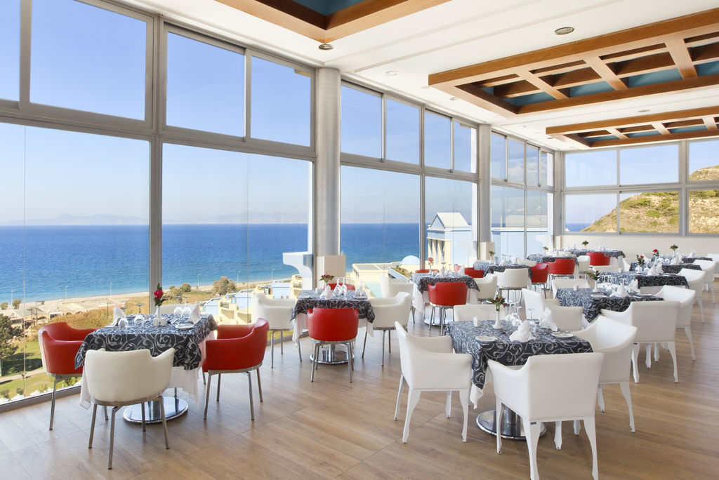 * Ligging * Gelegen op een heuvel * Openbaar strand Ixia Beach op circa 200 meter * Zandstrand * Kiezelstrand * Weg tussen het strand en de accommodatie * Dichtstbijzijnde winkel op circa 100 meter * Dichtstbijzijnde restaurant op circa 100 meter * Dichtstbijzijnde bar op circa 100 meter * Rhodos Acropolis op circa 1 kilometer * Filerimos op circa 9 kilometer * Kalithea op circa 12 kilometer * Lindos op circa 47 kilometer * Rhodos op circa 4 kilometer * Bushalte op circa 100 meter * Taxistandplaats op circa 100 meter * Algemeen & faciliteiten * 1 gebouw * Maximaal 9 verdiepingen * 298 kamers * Receptie * 24 uur per dag * Inchecken * Uitchecken * Lobby * 5 liften * Bagageruimte * Doucheruimte bij aankomst en vertrek gratis * Wifi in alle openbare ruimtes gratis * 3 winkels * Minimarkt * Wasservice tegen betaling * Doktersservice tegen betaling * op aanvraag * Tuin * Privé parkeergelegenheid gratis * Restaurants & bars * Buffetrestaurant * Themabuffetten * 4 à-la-carterestaurants * Aziatisch restaurant * Grieks restaurant * Italiaans restaurant * Mediterraans restaurant * Roomservice tegen betaling * 3 drinkgelegenheden * Bar * 2 pool-/snackbars * Activiteiten & ontspanning * Biljart tegen betaling * Darts gratis * Duikcentrum tegen betaling * Fitness gratis * Squash gratis * Tafeltennis gratis * Tafelvoetbal tegen betaling * Tennis gratis * Watersporten * Yoga tegen betaling * Spa Center * Binnenzwembad tegen betaling * Sauna tegen betaling * Bubbelbad binnen tegen betaling * Massages tegen betaling * Schoonheidsbehandelingen tegen betaling * Kapsalon tegen betaling * Fitnessruimte gratis * Gameroom toegang tegen betaling * Animatie voor volwassenen * 6 keer per week * Animatie voor kinderen * Meerdere keren per week * Shows * Livemuziek * Meerdere keren per week * Zwembaden * 3 buitenzwembaden * Zoetwater * Buitenzwembad voor kinderen * Zoetwater * Binnenzwembad * Zoetwater * Verwarmd * Zonneterras * Ligbedden gratis * Badhanddoekenservice gratis * Kinderfaciliteiten * Mini club (4-12 jaar) * 6 keer per week * Minidisco * Buitenspeeltuin * Babybedje op aanvraag via ons contact center gratis * Babysitservice tegen betaling * ter plaatse op aanvraag * Verzorging * Logies & Ontbijt * Ontbijt in buffetvorm * Halfpension * Ontbijt in buffetvorm * Diner in buffetvorm * Diner met keuze uit een vast menu * All Inclusive * Ontbijt in buffetvorm (07.00-10.30 uur) * Laat ontbijt in buffetvorm (11.00-12.00 uur) * Lunch in buffetvorm (12.30-15.00 uur) * Diner in buffetvorm (19.00-21.30 uur) * Dineren in het à-la-carterestaurant * Middernachtsnack (22.00-00.00 uur) * Selectie lokale (non-)alcoholische drankjes (09.00-01.00 uur) * Niet inbegrepen: * Roomservice * Goed om te weten * Huisdieren zijn niet toegestaanHotelkamers * 2-persoonskamer Deluxe Zeezicht Gedeeld Zwembad DD1 * Oppervlakte van circa 43 m² * Zeezicht * Airconditioning gratis * Kluisje gratis * Televisie gratis * Telefoon tegen betaling * Eet- en drinkfaciliteiten * Nespresso koffiezetapparaat gratis * Minibar tegen betaling * Bij aankomst gevuld met water * Badkamer met bad of douche, toilet, föhn, badjassen en badslippers * Wifi gratis * Terras (zitje, privézwembad) * Welkomstgeschenk * Fruitmand bij aankomst * 2-persoonskamer Deluxe Zijzeezicht DDI * Oppervlakte circa 42 m² * Zijzeezicht * Airconditioning gratis * Kluisje gratis * Televisie gratis * Telefoon tegen betaling * Eet- en drinkfaciliteiten * Nespresso koffiezetapparaat gratis * Minibar tegen betaling * Bij aankomst gevuld met water * Badkamer met bad of douche, toilet, föhn, badjassen en badslippers * Wifi gratis * Balkon of terras (zitje) * Welkomstgeschenk * Fruitmand bij aankomst * 2-persoonskamer Deluxe Zeezicht DDM * Oppervlakte circa 42 m² * Zeezicht * Airconditioning gratis * Kluisje gratis * Televisie gratis * Telefoon tegen betaling * Eet- en drinkfaciliteiten * Nespresso koffiezetapparaat gratis * Minibar tegen betaling * Bij aankomst gevuld met water * Badkamer met bad of douche, toilet, föhn, badjassen en badslippers * Wifi gratis * Terras (zitje) * Welkomstgeschenk * Fruitmand bij aankomst * Familiekamer Superior Zeezicht FSM * Oppervlakte circa 80 m² * Zeezicht * Woon-/slaapkamer met meerdere slaapplaatsen * Tweepersoonsbed * Slaapbank voor twee personen * Airconditioning gratis * Kluisje gratis * Televisie gratis * Telefoon tegen betaling * Eet- en drinkfaciliteiten * Nespresso koffiezetapparaat gratis * Minibar tegen betaling * Bij aankomst gevuld met water * Badkamer met bad of douche, toilet, föhn, badjassen en badslippers * Wifi gratis * Balkon of terras (zitje) * Welkomstgeschenk * Fruitmand bij aankomst * Familiekamer Suite Executive FUQ * Oppervlakte circa 80 m² * Zeezicht * Airconditioning gratis * Kluisje gratis * Televisie gratis * Telefoon tegen betaling * Eet- en drinkfaciliteiten * Nespresso koffiezetapparaat gratis * Minibar tegen betaling * Bij aankomst gevuld met water * Badkamer met bad of douche, toilet, föhn, badjassen en badslippers * Wifi gratis * Terras (zitje, privézwembad) * Welkomstgeschenk * Fruitmand bij aankomst * Junior suite Deluxe Zijzeezicht JDI * Oppervlakte circa 52 m² * Zijzeezicht * Airconditioning gratis * Kluisje gratis * Televisie gratis * Telefoon tegen betaling * Eet- en drinkfaciliteiten * Nespresso koffiezetapparaat gratis * Minibar tegen betaling * Bij aankomst gevuld met water * Badkamer met bad of douche, toilet, föhn, badjassen en badslippers * Wifi gratis * Terras (privézwembad) * Welkomstgeschenk * Fruitmand bij aankomst * Junior suite Deluxe Zeezicht JDM * Oppervlakte circa 52 m² * Zeezicht * Airconditioning gratis * Kluisje gratis * Telefoon tegen betaling * Eet- en drinkfaciliteiten * Nespresso koffiezetapparaat gratis * Minibar tegen betaling * Bij aankomst gevuld met water * Badkamer met bubbelbad of hydromassagedouche, toilet, föhn, badjassen en badslippers * Wifi gratis * Balkon of terras (zitje) * Welkomstgeschenk * Fruitmand bij aankomst * Suite Superior Zijzeezicht USI * Oppervlak