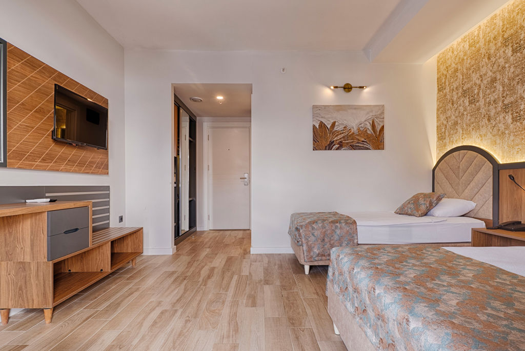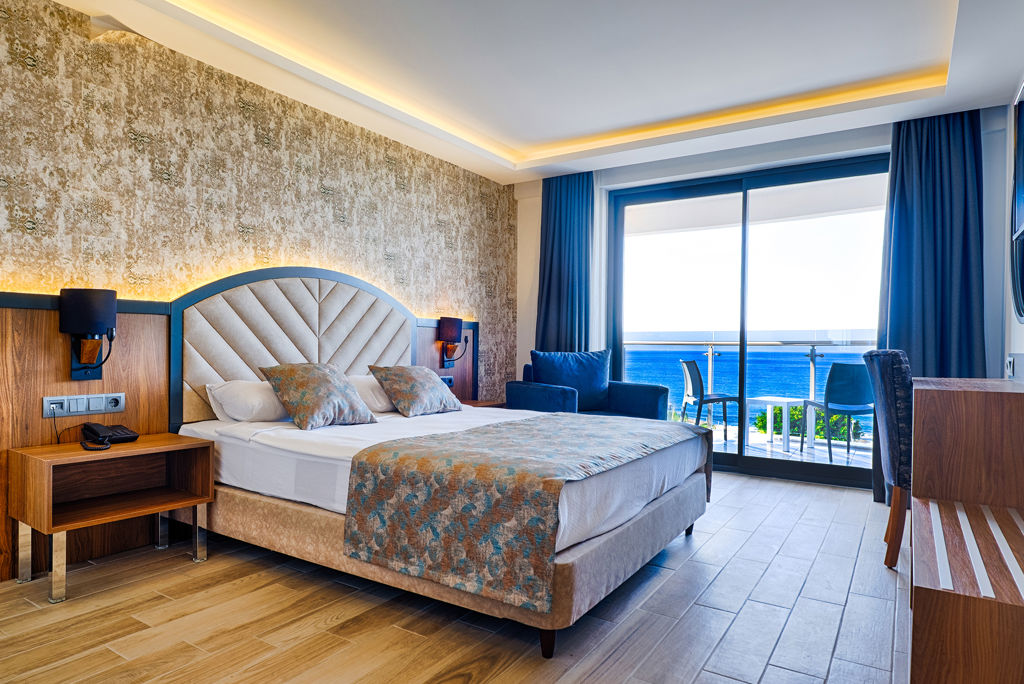 * Ligging * Gelegen aan het privéstrand (30 meter) * Zandstrand * Kiezelstrand * Ligbedden met matrasjes * Parasol * Centrum van Alanya op circa 4 kilometer * Dichtstbijzijnde winkel op circa 100 meter * Dichtstbijzijnde restaurant op circa 100 meter * Dichtstbijzijnde bar op circa 100 meter * Bushalte op circa 50 meter * Taxistandplaats op circa 50 meter * Algemeen & faciliteiten * Kindvriendelijk complex * 4 gebouwen * Maximaal 6 verdiepingen * 212 kamers * Receptie * 24 uur per dag * Lobby met zitgedeelte * 4 liften * Lift in elk gebouw * Bagageruimte * Wifi in één van de openbare ruimtes * Meerdere winkels * Minimarkt * Wasservice tegen betaling * Doktersservice tegen betaling * Tuin * Openbare parkeergelegenheid * Privé parkeergelegenheid * Restaurants & bars * Buffetrestaurant * 4 drinkgelegenheden * 4 bars * Beachbar * Lobbybar * Poolbar * Activiteiten & ontspanning * Aerobics * Boccia * Darts * Fitness * Tafeltennis * Watersporten tegen betaling * Spafaciliteiten * Sauna tegen betaling * Turks stoombad tegen betaling * Massages tegen betaling * Schoonheidsbehandelingen tegen betaling * Animatie voor volwassenen * 6 keer per week * Animatie voor kinderen * 6 keer per week * Shows voor volwassenen en kinderen * 3 keer per week * Zwembaden * 2 buitenzwembaden * Activiteitenbad * Zoetwater * Eén van deze zwembaden heeft 3 glijbanen * Buitenzwembad voor kinderen * Zoetwater * Zonneterras * Ligbedden met matrasjes * Parasol * Badhanddoekenservice * Kinderfaciliteiten * Mini club (4-12 jaar) * 6 keer per week * Kinderen tussen 4 en 12 jaar zijn welkom onder begeleiding van een volwassene * Minidisco * Buitenspeeltuin * Babybedje als preferentie toe te voegen in het boekingsformulier * Verzorging * All Inclusive * Ontbijt in buffetvorm (07.00-09.30 uur) * Laat ontbijt in buffetvorm (09.30-10.00 uur) * Lunch in buffetvorm (12.30-14.00 uur) * Diner in buffetvorm (19.00-21.00 uur) * Snacks (12.00-17.00 uur) * Koffie, thee & koekjes (17.00-18.00 uur) * IJs (15.00-17.00 uur) * Middernachtsnack (23.00-00.00 uur) * Selectie lokale (non-)alcoholische drankjes (10.00-00.00 uur) * Goed om te weten * Huisdieren zijn niet toegestaanHotelkamers * 2-persoonskamer Standaard Landzicht DZ * Oppervlakte circa 22 m² * Landzicht * Airconditioning * Kluisje * Satelliettelevisie * Telefoon tegen betaling * Eet- en drinkfaciliteiten * Waterkoker * Minibar * Bij aankomst gevuld met water * Badkamer met douche, toilet en föhn * Wifi tegen betaling * Balkon of terras (zitje) * 2-persoonskamer Standaard Zijzeezicht DZI * Oppervlakte van circa 22 m² * Zijzeezicht * Airconditioning * Kluisje * Satelliettelevisie * Telefoon * Eet- en drinkfaciliteiten * Waterkoker * Minibar * Bij aankomst gevuld met water * Badkamer met douche, toilet en föhn * Wifi tegen betaling * Balkon (zitje) * 2-persoonskamer Standaard Zeezicht DZM * Oppervlakte van circa 22 m² * Zeezicht * Airconditioning * Kluisje * Satelliettelevisie * Telefoon tegen betaling * Eet- en drinkfaciliteiten * Waterkoker * Minibar * Gevuld met water * Badkamer met douche, toilet en föhn * Wifi tegen betaling * Balkon (zitje) * Familiekamer Standaard FZ1 * Oppervlakte circa 37 m² * Meerdere slaapkamers * Airconditioning * Kluisje * Satelliettelevisie * Telefoon tegen betaling voor alle gasten * Eet- en drinkfaciliteiten * Waterkoker * Minibar * Bij aankomst gevuld met water * Badkamer met douche, toilet en föhn * Wifi tegen betaling * Balkon of terras (zitje).