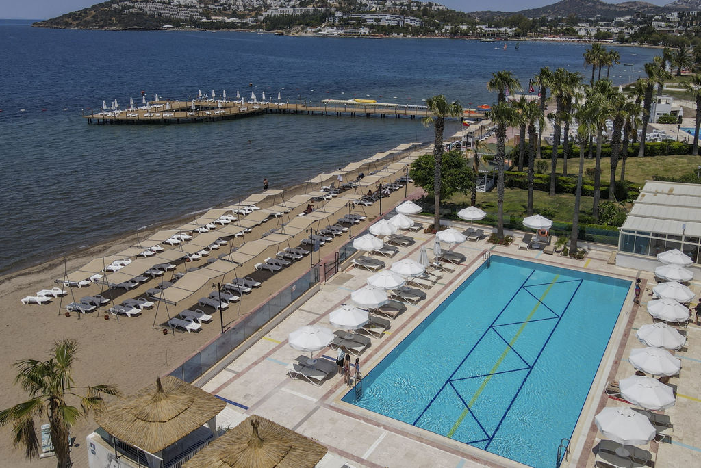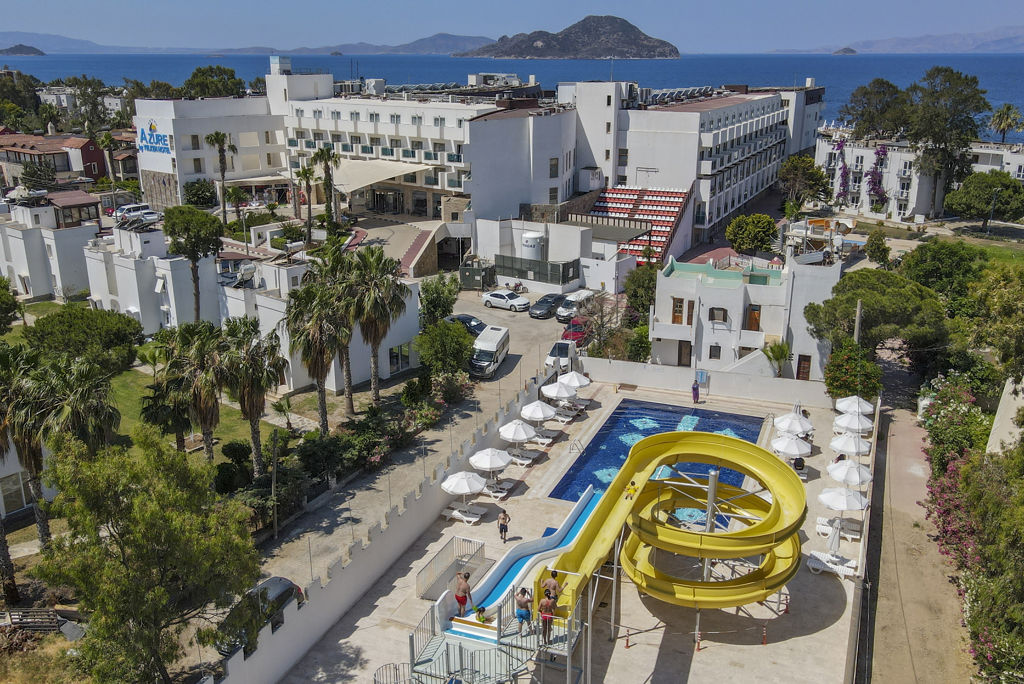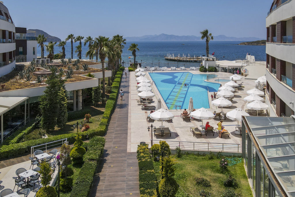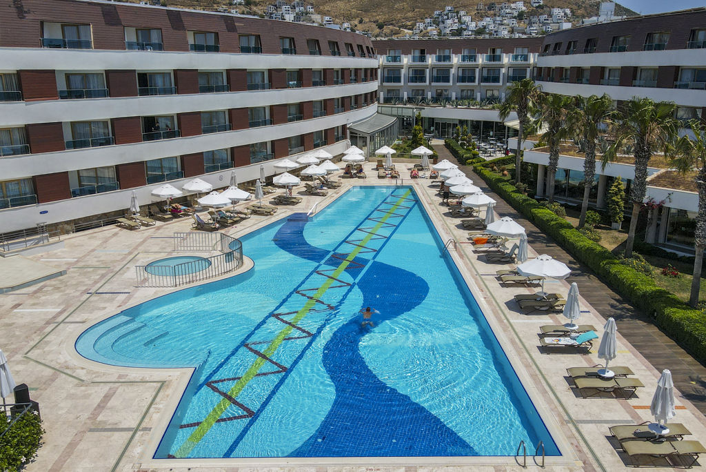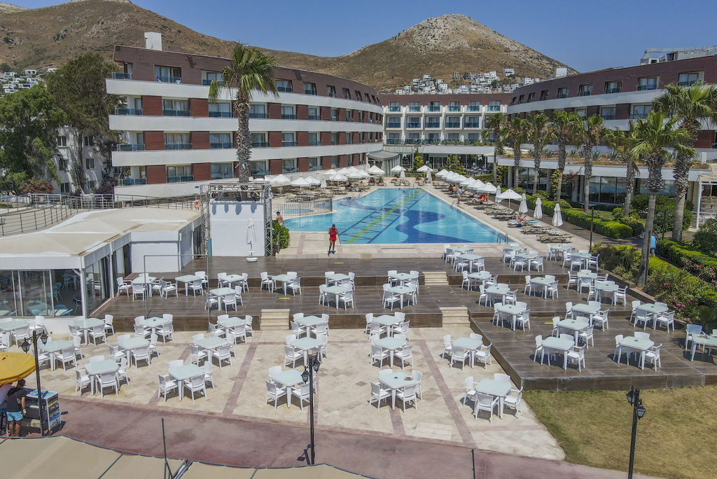 2 kilometer * Bodrum op ca. 22 kilometer afstand van het hotel * Bushalte op ca. 300 meter * Dichtstbijzijnde winkels, restaurants en bars op ca. 2 kilometer Faciliteiten * Gedeeltelijk gerenoveerd in 2022-2023 * 2 gebouwen met maximaal 3 verdiepingen * 5 liften, in elk gebouw is een lift aanwezig * 299 kamers * 24-uursreceptie * Welkomstservice met een welkomstdrankje * Check-outservice met een fles water * Bagageruimte * Lobby * Tuin * Gratis wifi in de openbare ruimtes * Kapsalon* * Winkeltjes en minimarkt* * Doktersservice* * Wasservice* * Openbare parkeerplaatsen * Tegen betaling Restaurants & bars * 1 buffetrestaurant * 2 à-la-carterestaurants (vooraf reserveren) * 1 snackrestaurant * 5 bars, waaronder een Baby Bar om de melk voor de baby op te warmen * Disco Zwembaden * 2 buitenzwembaden waaronder een relaxbad * 1 buitenzwembad met 4 glijbanen (op vaste tijden geopend) * 1 verwarmd binnenzwembad * Zonneterras en zonnesteiger * Privéstrand * Ligbedden, matrasjes en parasols gratis (zwembad en strand) * Gratis badhanddoekenservice Hotelkamers * Standaardkamer landzicht (1-3 personen) * Gedeeltelijk gerenoveerd * Ca.
