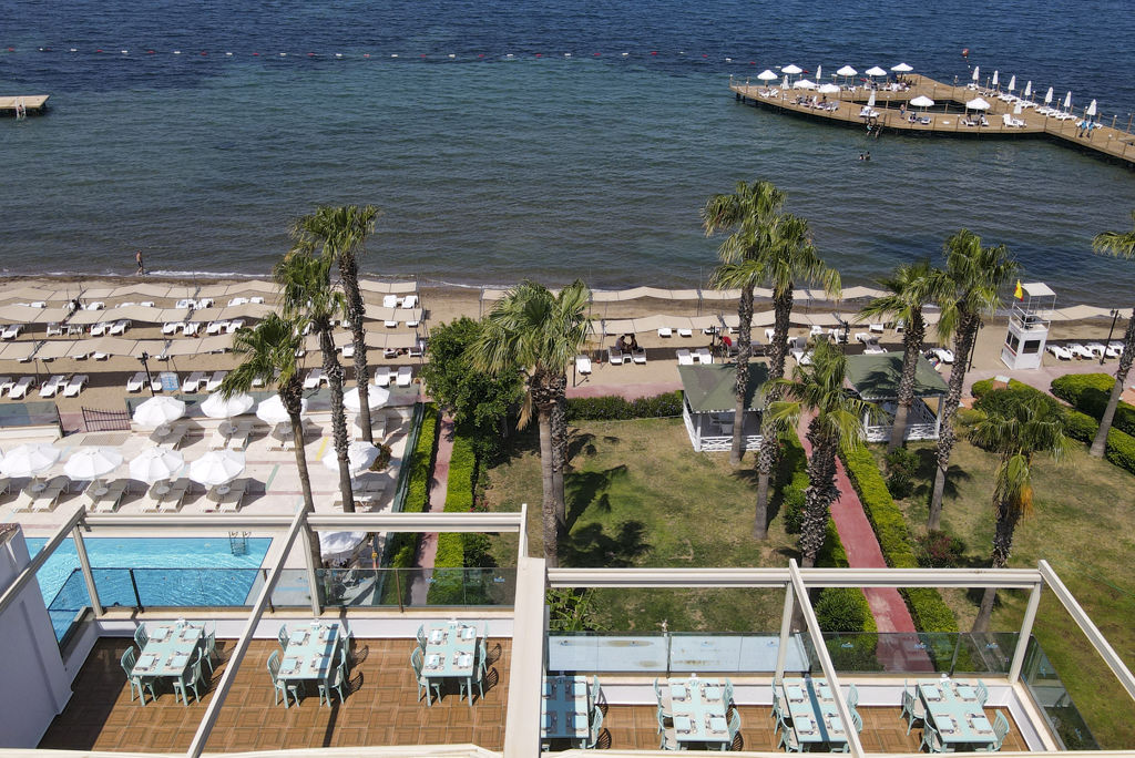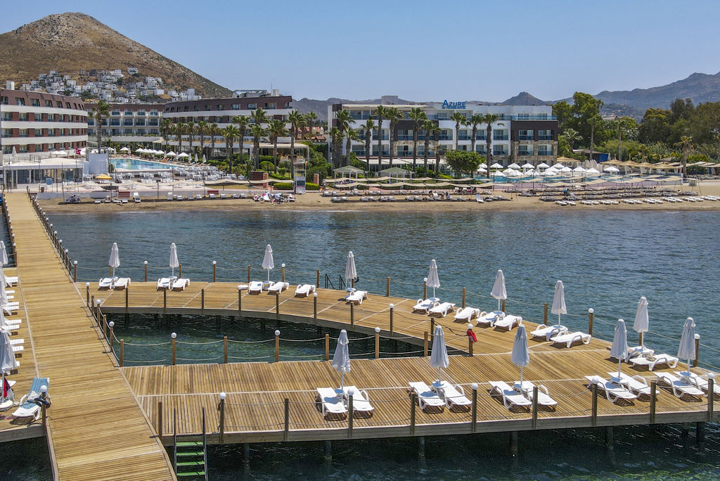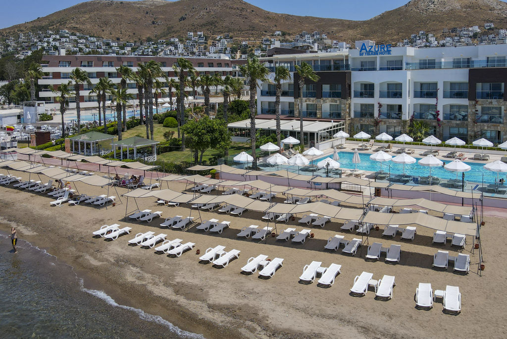 Direct naar: * Ligging () * Faciliteiten () * Restaurants & bars () * Zwembaden () * Hotelkamers () * Activiteiten & ontspanning () * Kinderfaciliteiten () * Verzorging () Ligging Azure By Yelken * Direct aan het privéstrand, gescheiden door een boulevard * Centrum van Turgutreis op ca.