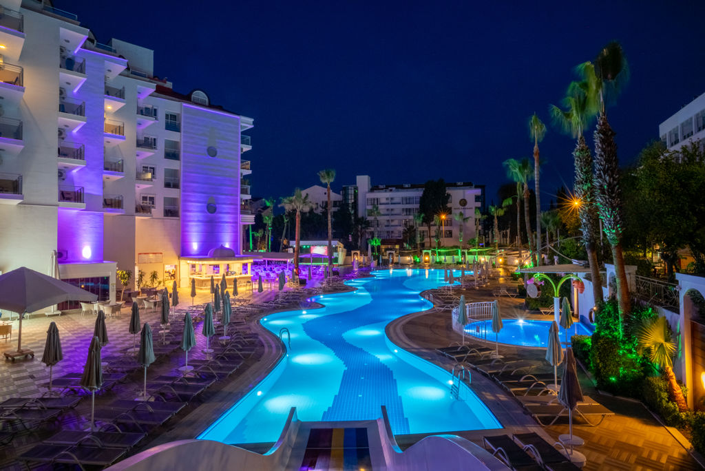 200 meter van het openbare strand * Dichtstbijzijnde winkel, restaurant en bar op ca. 100 meter * Ca. 2 kilometer van het centrum van Marmaris * Bus stopt voor de deur * Op ca. 8 kilometer van Icmeler Faciliteiten * 3 gebouwen met 5 verdiepingen * In elk gebouw is een lift aanwezig * 272 kamers * 24-uursreceptie * Lobby * Wifi * Bagageruimte * Minimarkt* * Doktersservice* * Wasservice* * Kapsalon* *Tegen betaling Let op: een scootmobiel is helaas niet toegestaan, Restaurants & bars * 1 buffetrestaurant * 1 à-la-carterestaurant (vooraf reserveren en geopend halverwege mei t/m eind september) * 1 snackbar * 4 bars Hotelkamers * Standaardkamer (1-3 personen) * Ca.