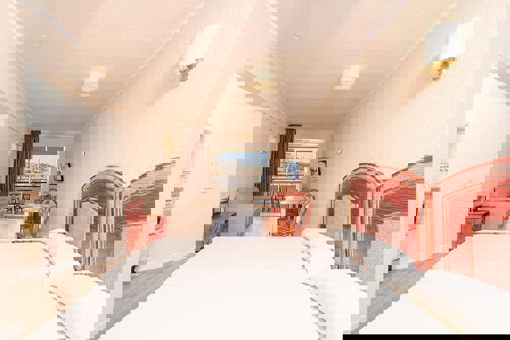 Hier ervaar je de vrijheid van een appartement met het gemak van een hotel. Met het strand en de haven van Puerto Colón op loopafstand, sta je binnen no-time met je voeten in het zand of aan een gezellige boulevard vol restaurants. In het hotel geniet je van een ontspannen sfeer, een verwarmd zwembad en gastvrij personeel dat altijd voor je klaarstaat. Van 's ochtends tot 's avonds is het hier gezellig! Kinderen vermaken zich met de miniclub en kinderdisco, terwijl jij de dag afsluit met een drankje bij Flynn & Flanagan.