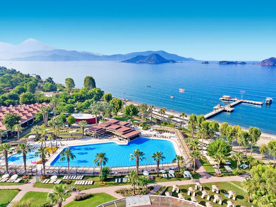 17 km van het toeristische centrum van Fethiye. Direct voor de deur bevinden zich haltes van het lokale openbaar vervoer. In het vakantiedorp werd 2024 opgeknapt. Op de gasten wachten 521 kamers en 24 appartementen, die over twee 3 verdiepingen tellende gebouwen zijn verdeeld.