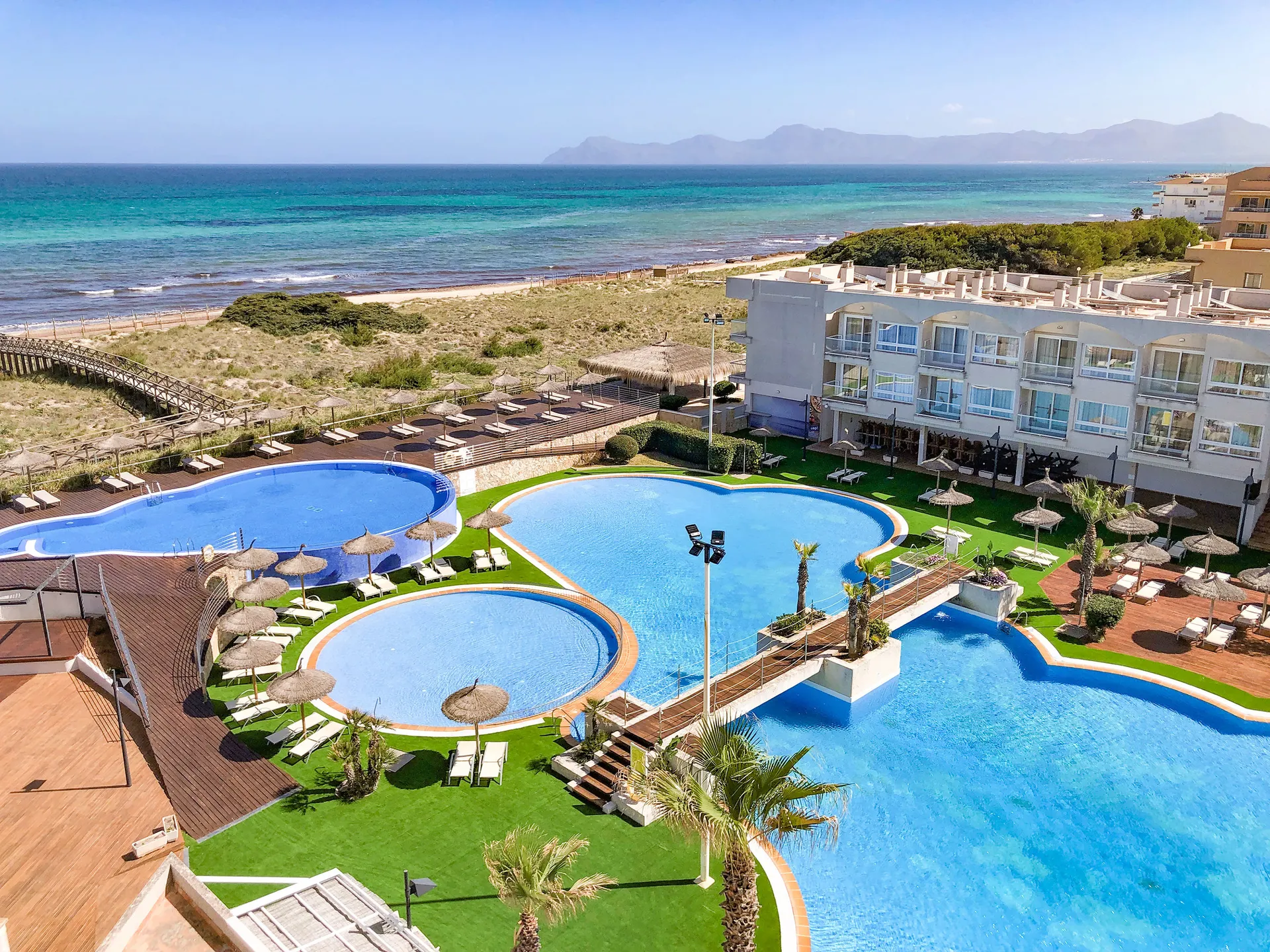 Dit aantrekkelijk luxehotel is wondermooi gelegen aan de rand van C'an Picafort, rustige en direct aan het kilometerslange, vlak aflopende duinstrand.
