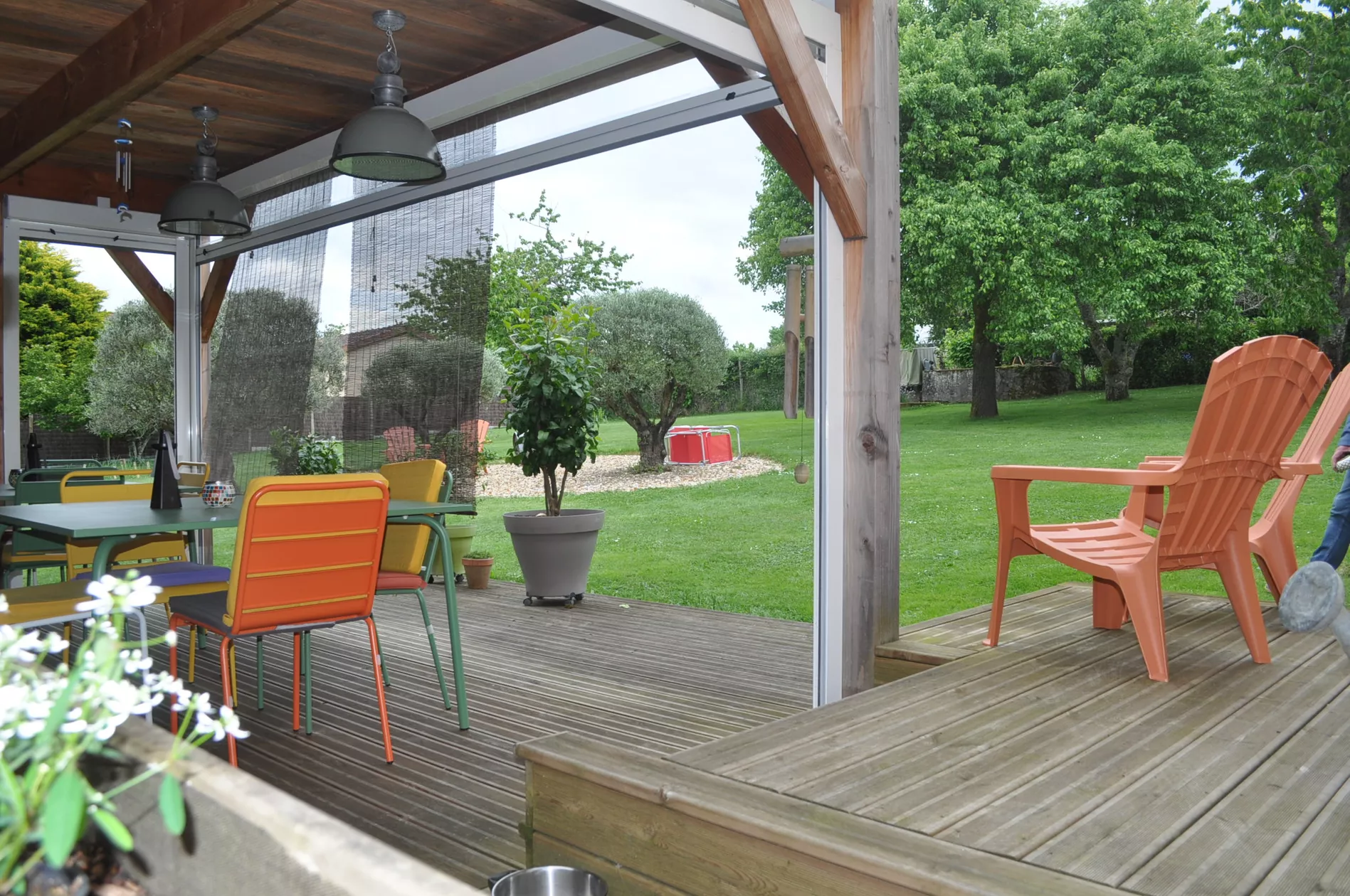 In de gemeenschappelijke tuin (1000m2) is het goed toeven rondom de 3 prachtige olijfbomen.