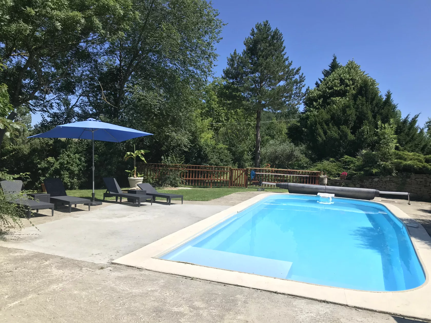| Faciliteiten | VaatwasserWasmachineStrijkijzerMoestuinKinderbedKinderstoelSpeeltuinTVInternetOpen haardHaardrogerMet zwembad |