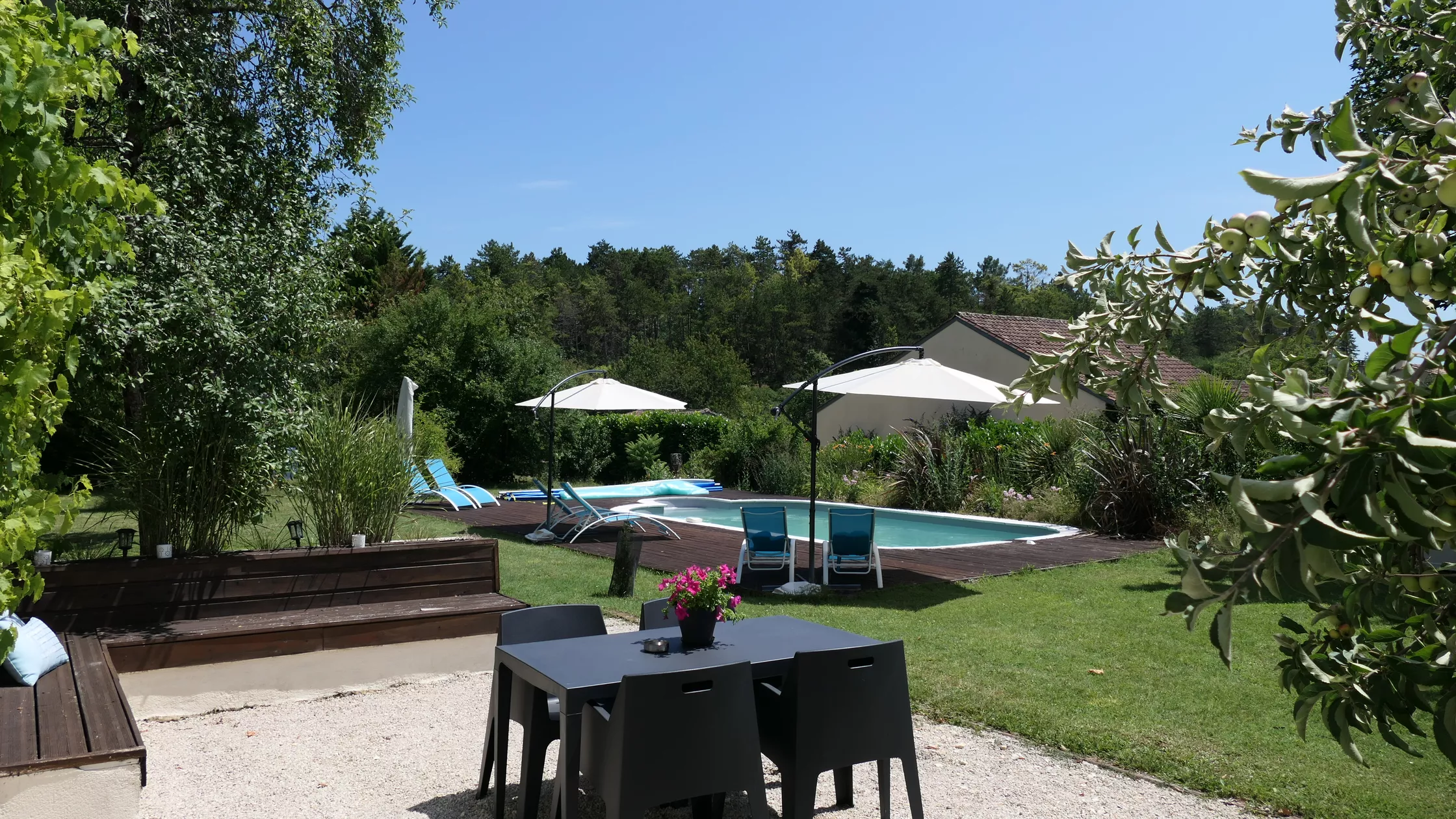 | Faciliteiten | WasmachineStrijkijzerOmheinde tuinKinderbedSpeeltuinTVInternetOpen haardHaardrogerBadMet zwembad |