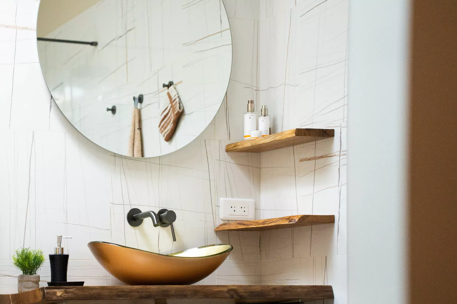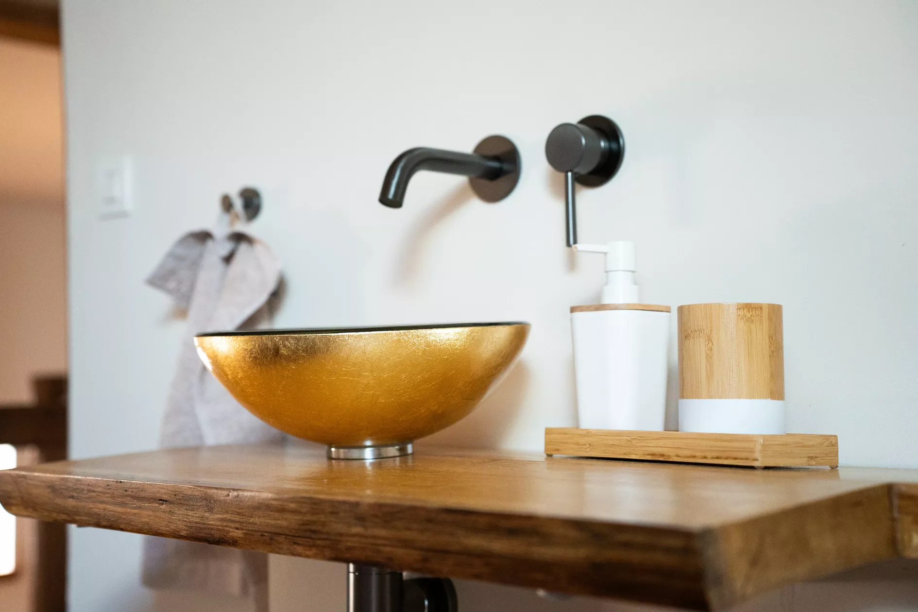 sfeervolle ruime master bedroom met tweepersoonsbed (180x210) met wastafel op de kamer
