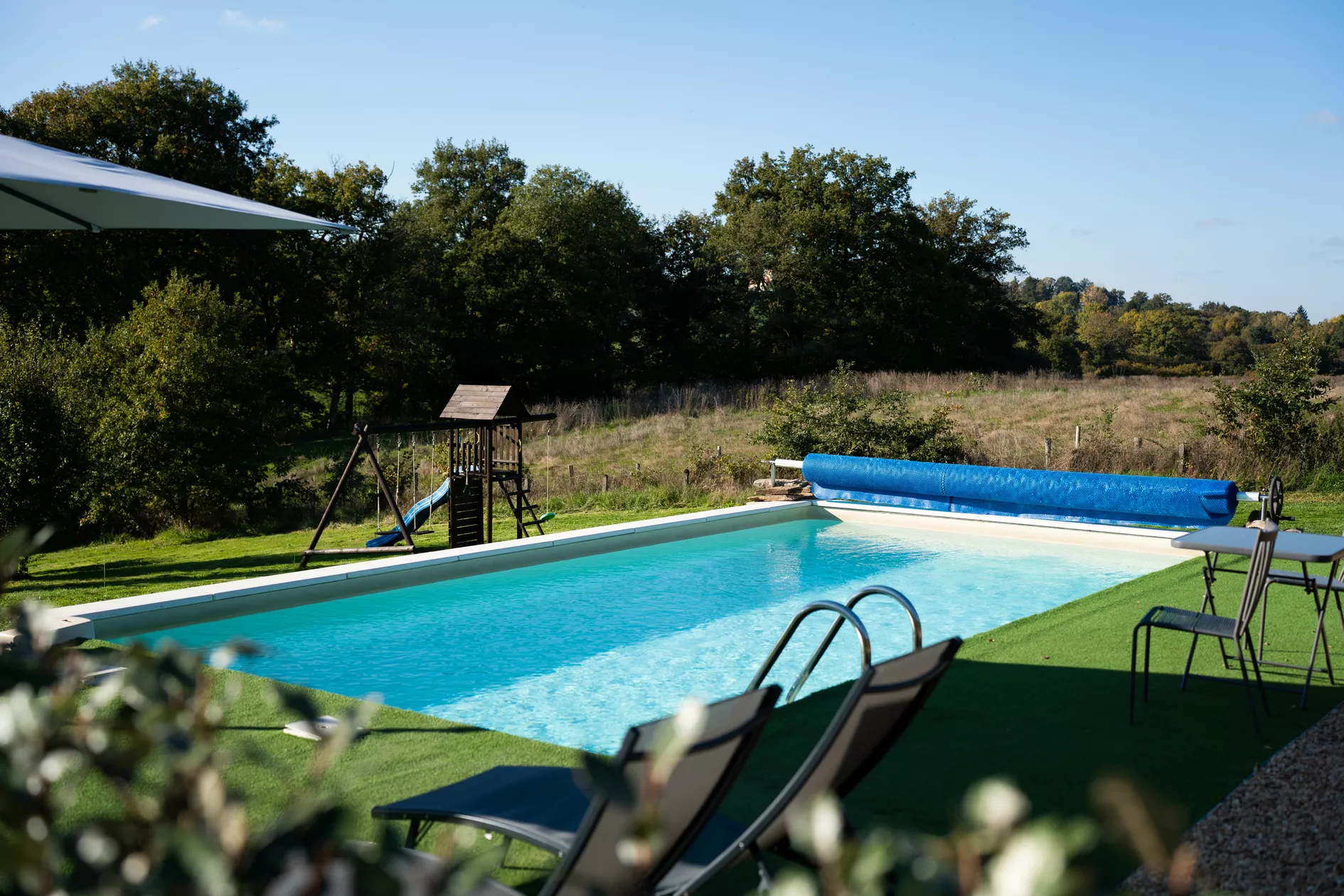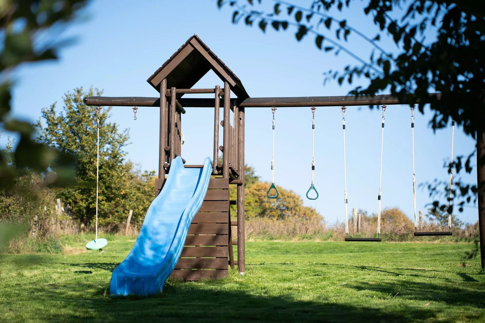 Beide gedeelten zijn apart van elkaar omheind. Rondom het huis beschikt u over een ruime zonnige tuin met zandbak, waterbadje, glijbaantje (kleine kinderen kunnen hier heerlijk spelen) en het grote schaduw terras met barbecue. Daarnaast beschikt u over een groot speelveld met een eventueel verwarmd zwembad (8x4 meter) en zonneterras. (helemaal alleen voor u).