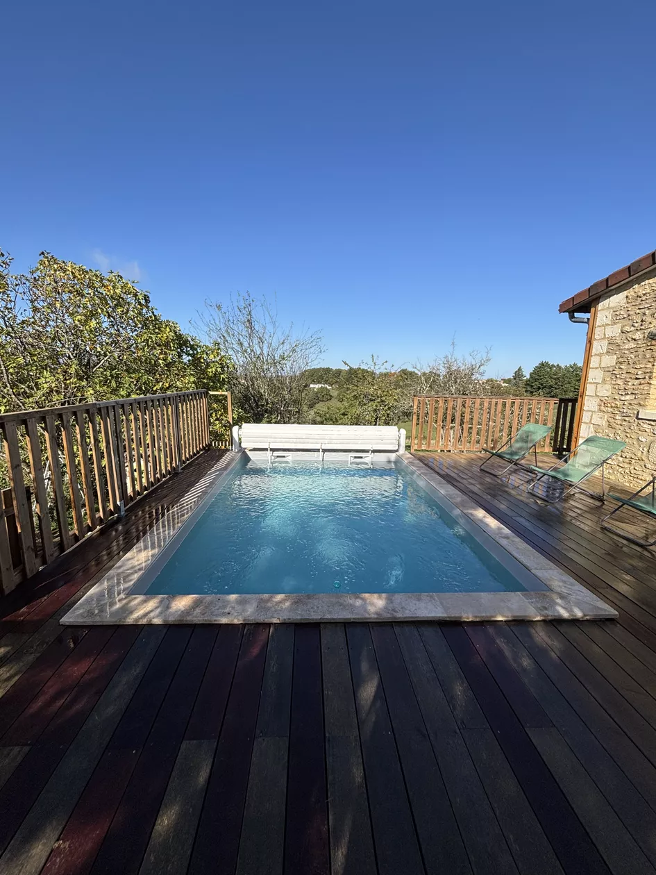 Deze charmante, vrijstaande en gelijkvloerse woning van 90 m2 met privézwembad- gebouwd in 2024 - is gelegen in het hart van de Dordogne/Périgord en dichtbij de belangrijkste toeristische bezienswaardigheden.