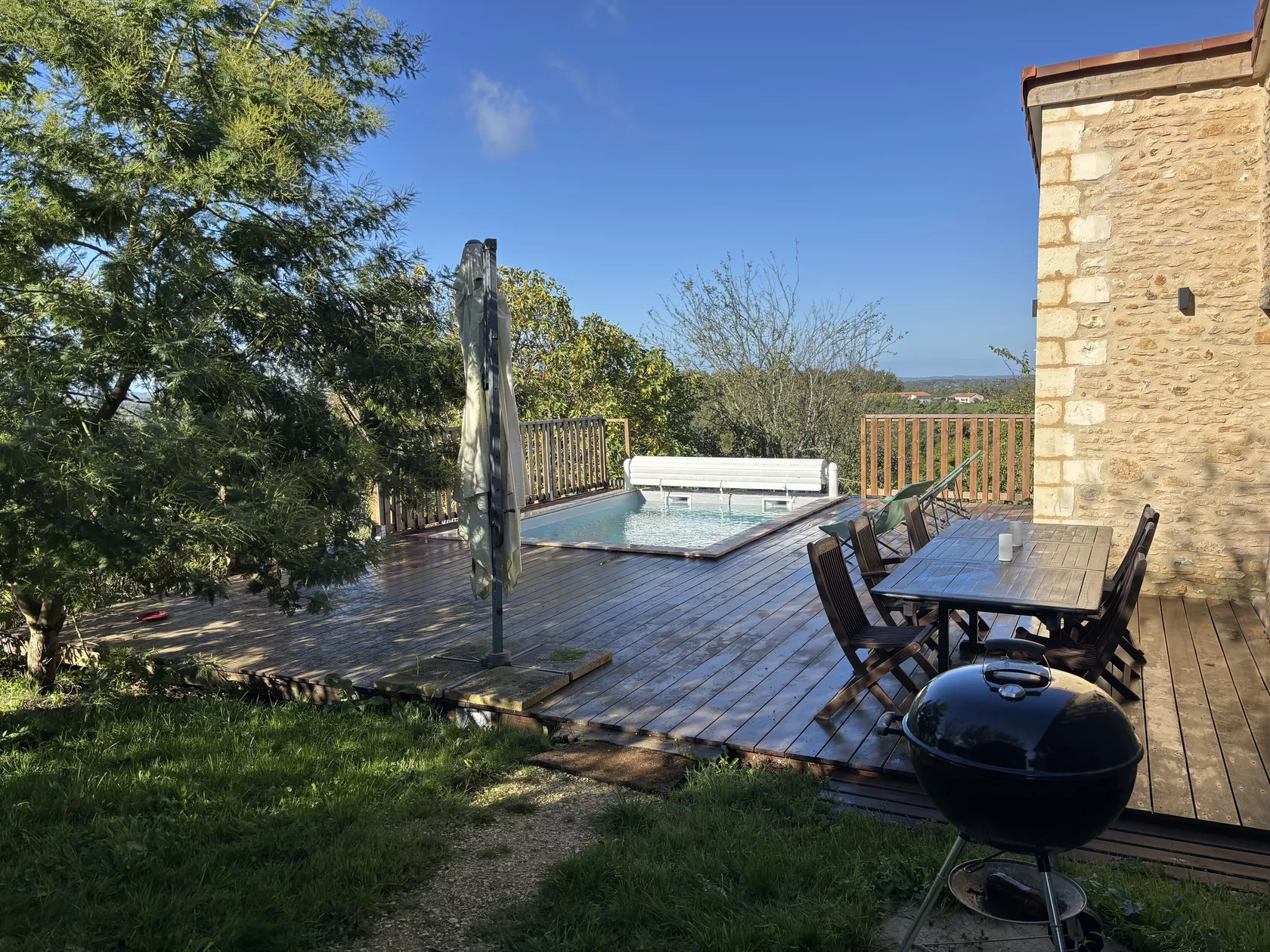 De woning heeft een groot terras met een prachtig panoramisch uitzicht over de heuvels en een privézwembad.