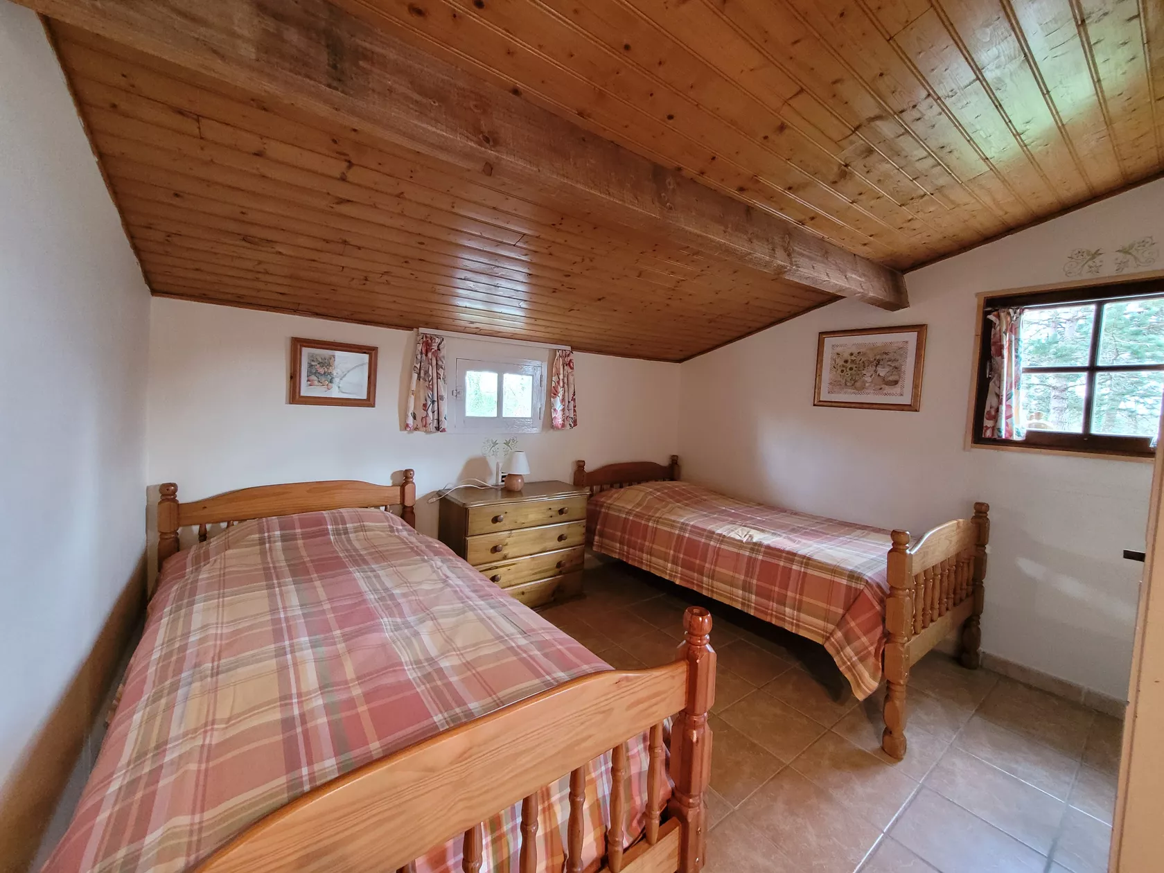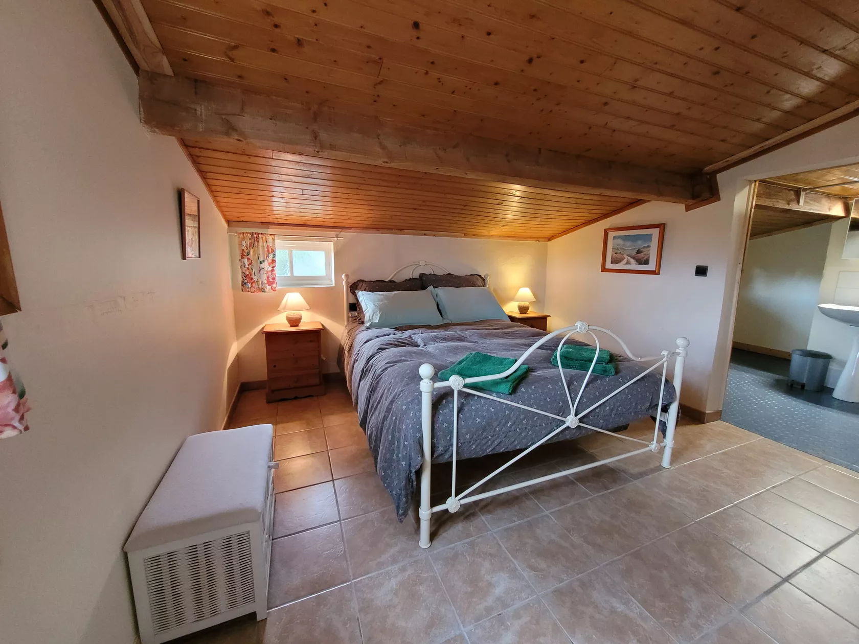 In de zijruimte vind je de slaapkamer met 2-persoons bed, met badkamer ensuite. Ook de tweede slaapkamer heeft badkamer ensuite, deze slaapkamer is voorzien van twee 1-persoons bedden.