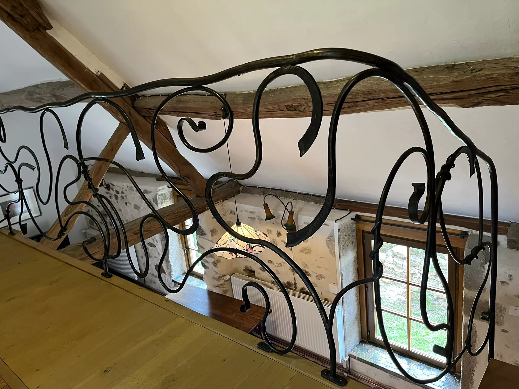 Een deel van de boerderij is ingericht als gîte en kunnen we verhuren. Er is een terras op de hoogte van de leefruimte, ideaal om rustig te ontbijten in een prachtige omgeving. Er zijn 2 slaapkamers, 1 open slaapkamer in de mezzanine met dubbel bed en 1 op het gelijkvloers met 2 enkele bedden die natuurlijk tegen elkaar kunnen gezet worden. Eventueel kan men nog van een kinderbedje gebruik maken.