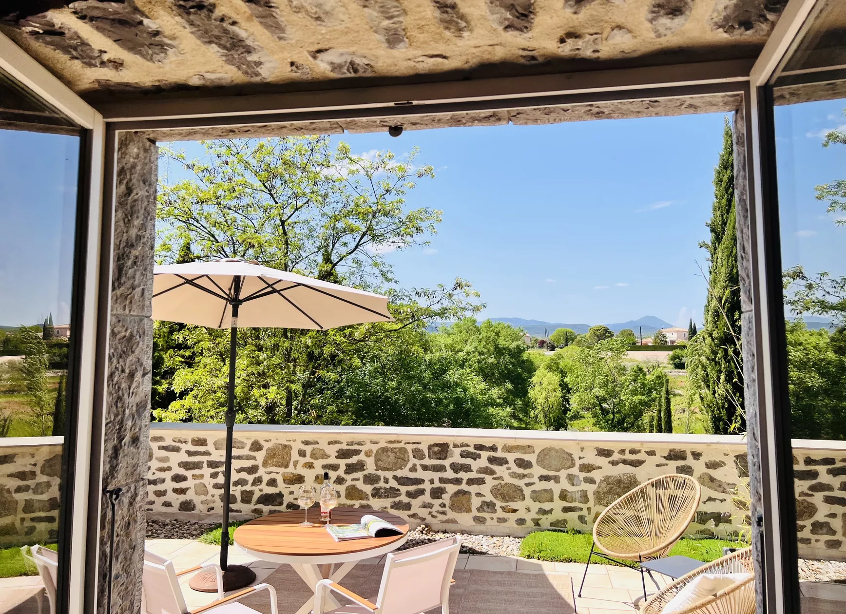 Aangrenzend een terras met eethoek, plancha en uitzicht over de tuin en de heuvels. Als je dat wilt kunt je ook ontbijt bestellen. Twee keer per week koken wij voor onze gasten. Je kunt ronddwalen in de tuin bezaaid met vijgenbomen, cipressen en olijfbomen, verschillende zitjes, hangmatten en natuurlijk een jeu de boulesbaan.