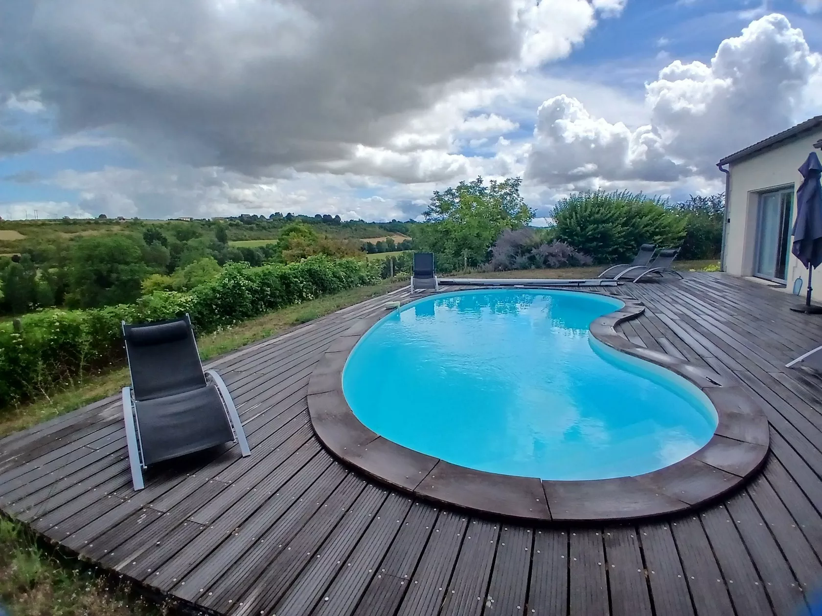 Het heeft een geweldig uitzicht over het open landschap en het kasteel van Chalais is in het volle zicht. Een vrijstaande moderne vakantie villa met 3 slaapkamers, 2 badkamers, een eigen zwembad, een groot houten terras buiten en een omheinde tuin.
