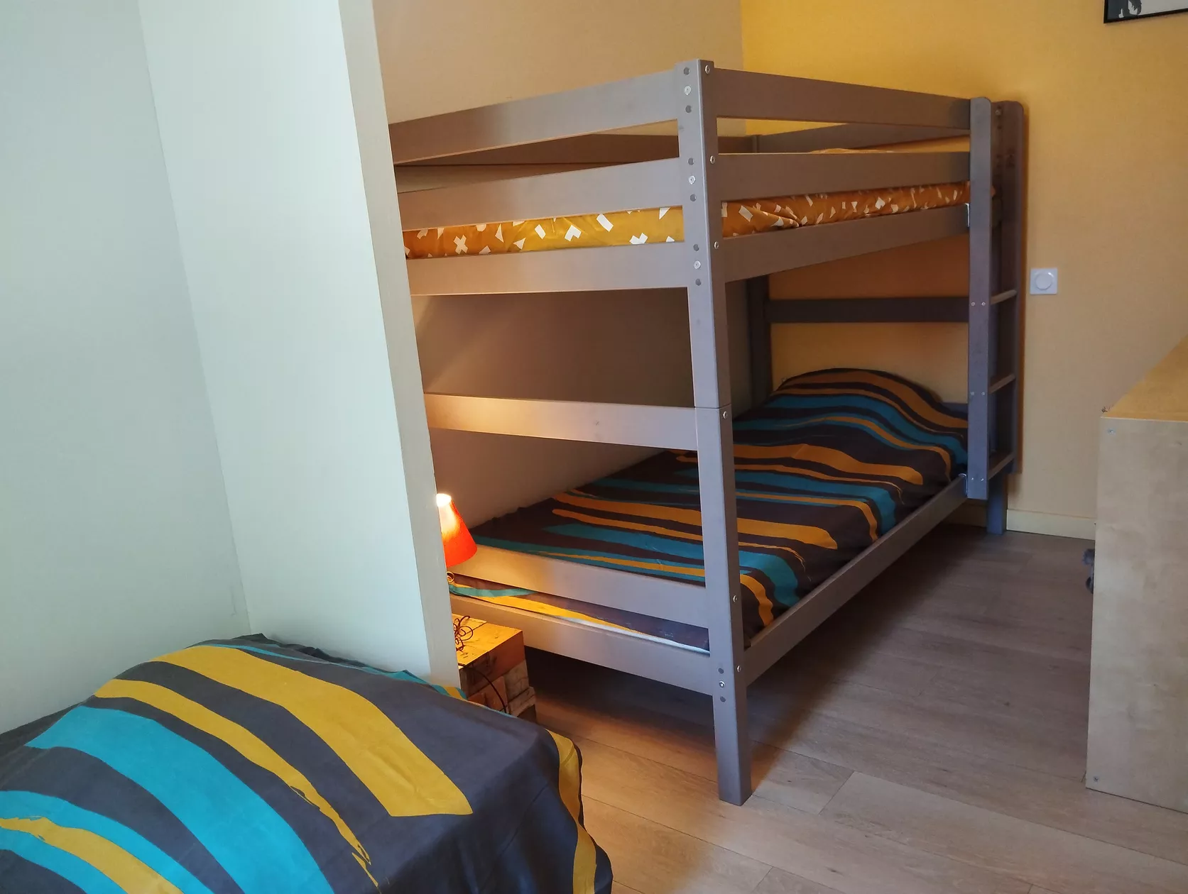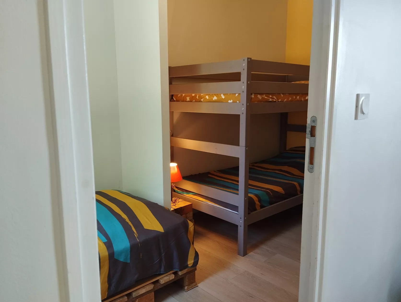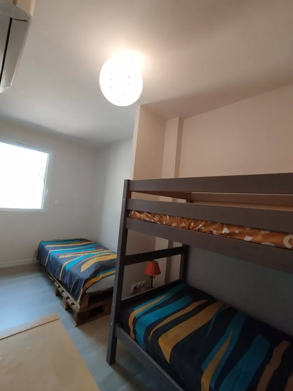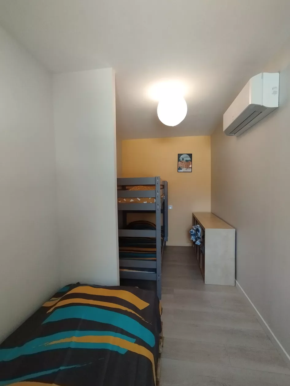 - een slaapkamer met 1 eenpersoonsbed en 1 stapelbed (= 2 eenpersoonsbedden)