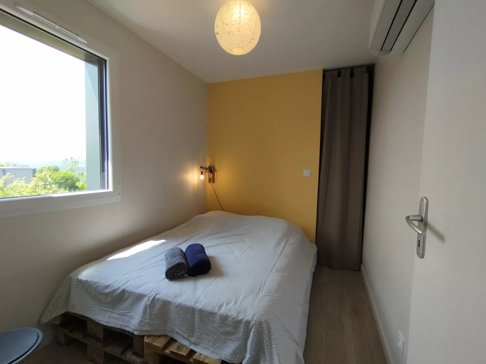 - een slaapkamer met een tweepersoonsbed