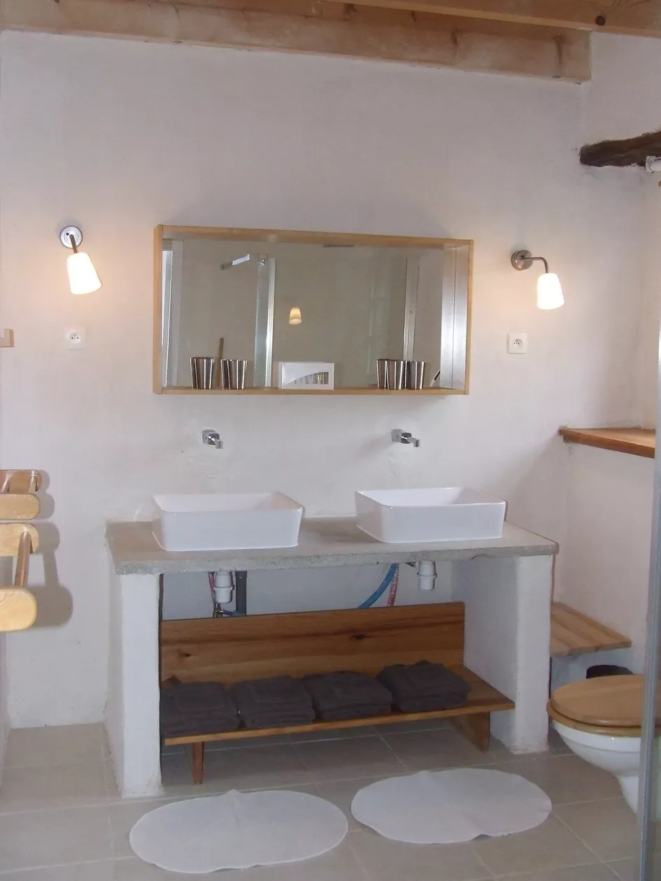 Ook voor minder valide. Grote badkamer met 2 wasbakken en inloop douche, en toilet. De badlakens en handdoeken liggen u klaar.