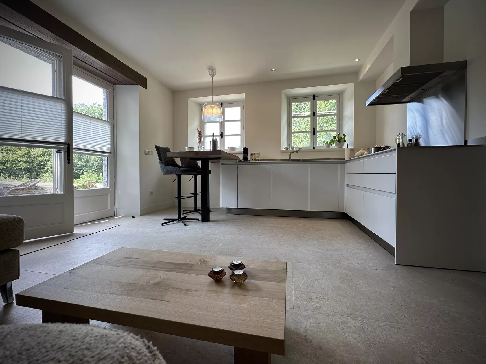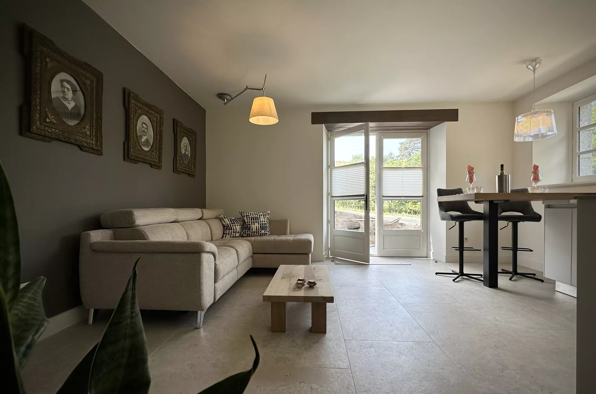 Via het privé terras komt U binnen in de woonkamer / keuken die van alle gemakken is voorzien. Een hoekbank waar u heerlijk op kunt relaxen en een bartafel met comfortabele barkrukken.