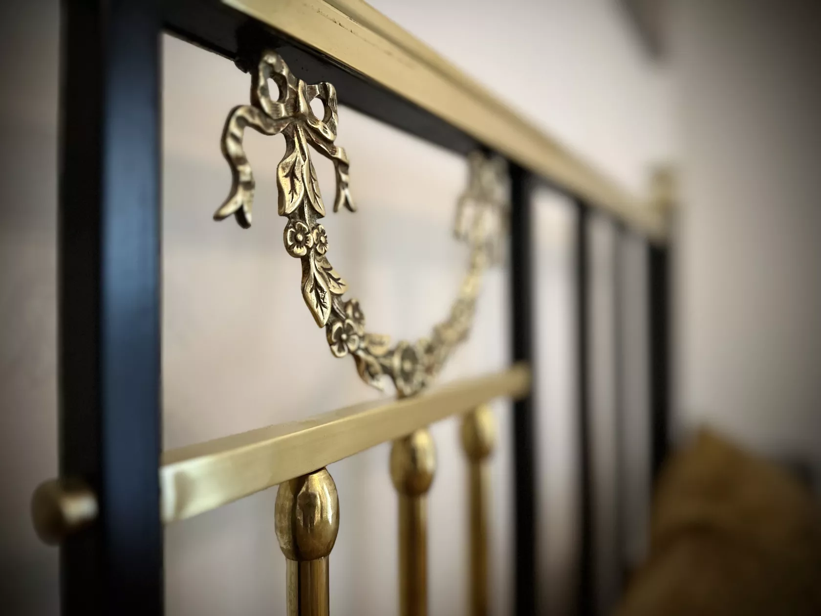 Japanse schuifgordijnen. In de slaapkamer staat een 2 persoonsbed van 160 x 200 cm en een antieke kledingkast.
