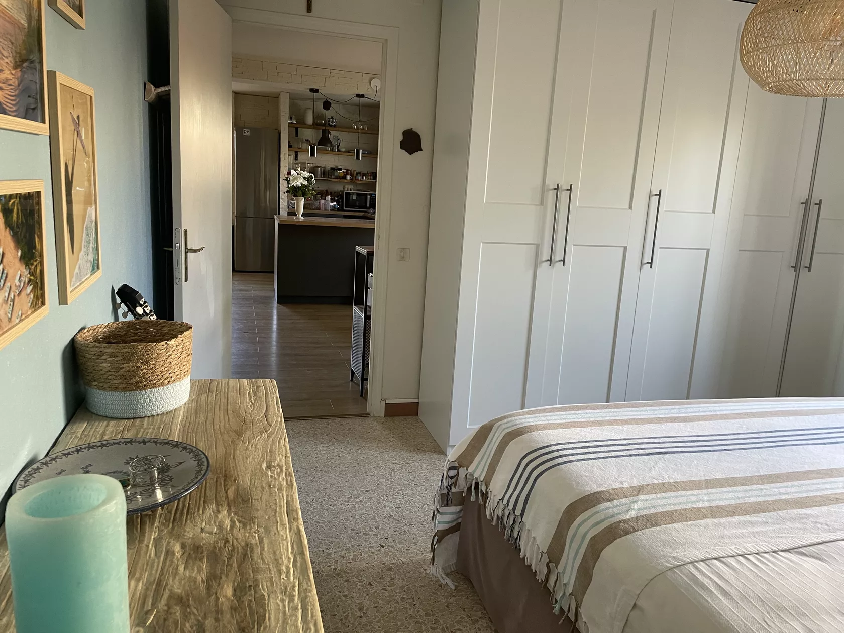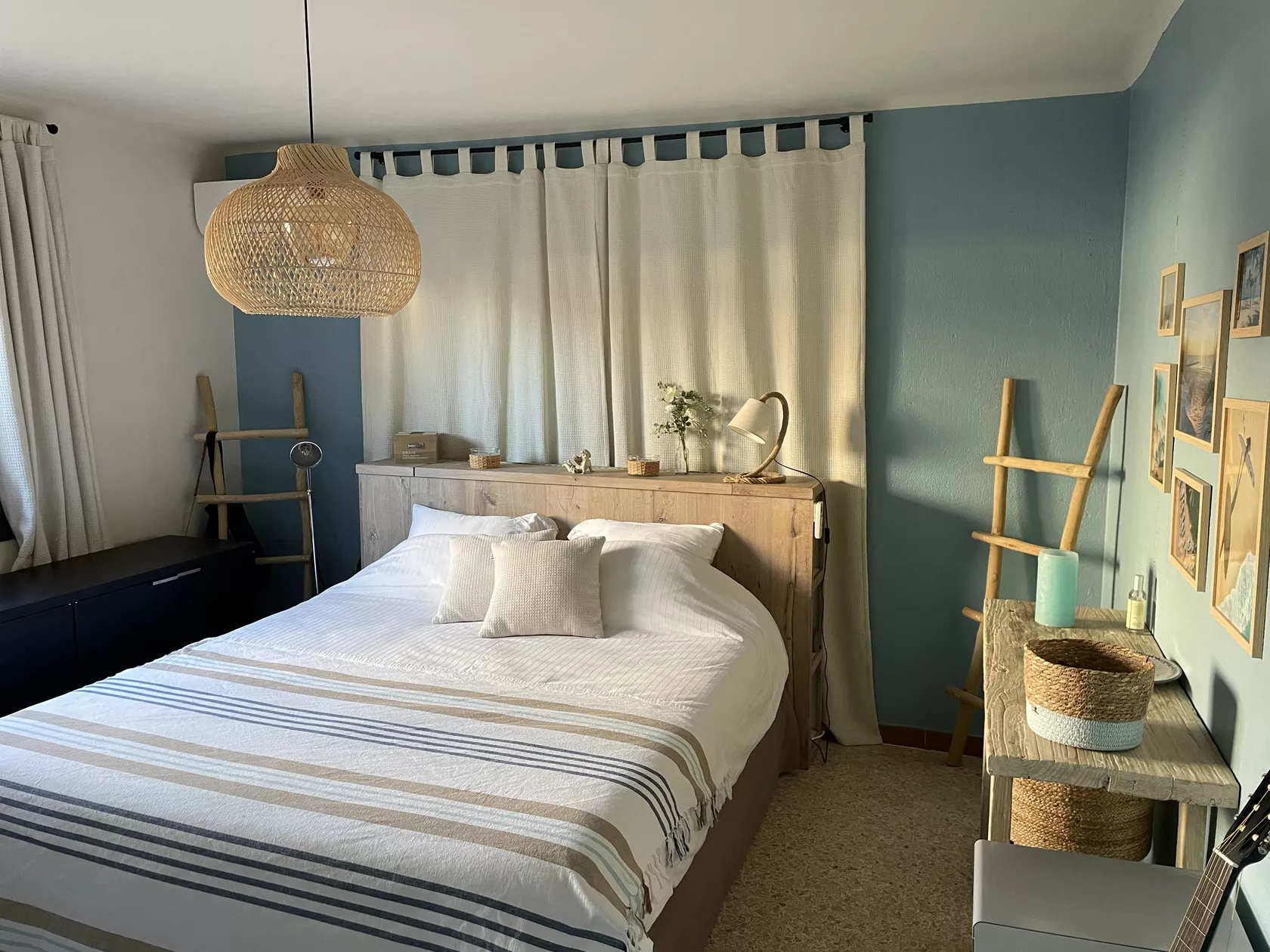 Master bedroom: groot bed (200x180 cm), royale kledingkast, airconditioning.