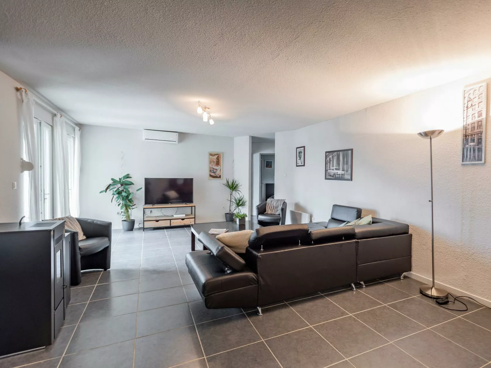 • Grote, lichte woonkamer dankzij de schuiframen naar het terras