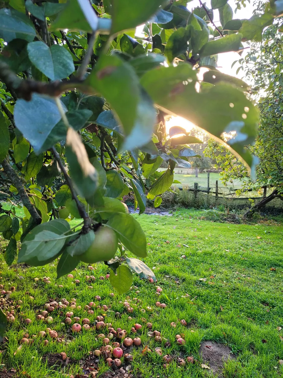 Vanaf het terras kijk je uit op de boomgaard anex tuin waar onze zinken badkuip staat met een buiten buitendouche om lekker te ontspannen.