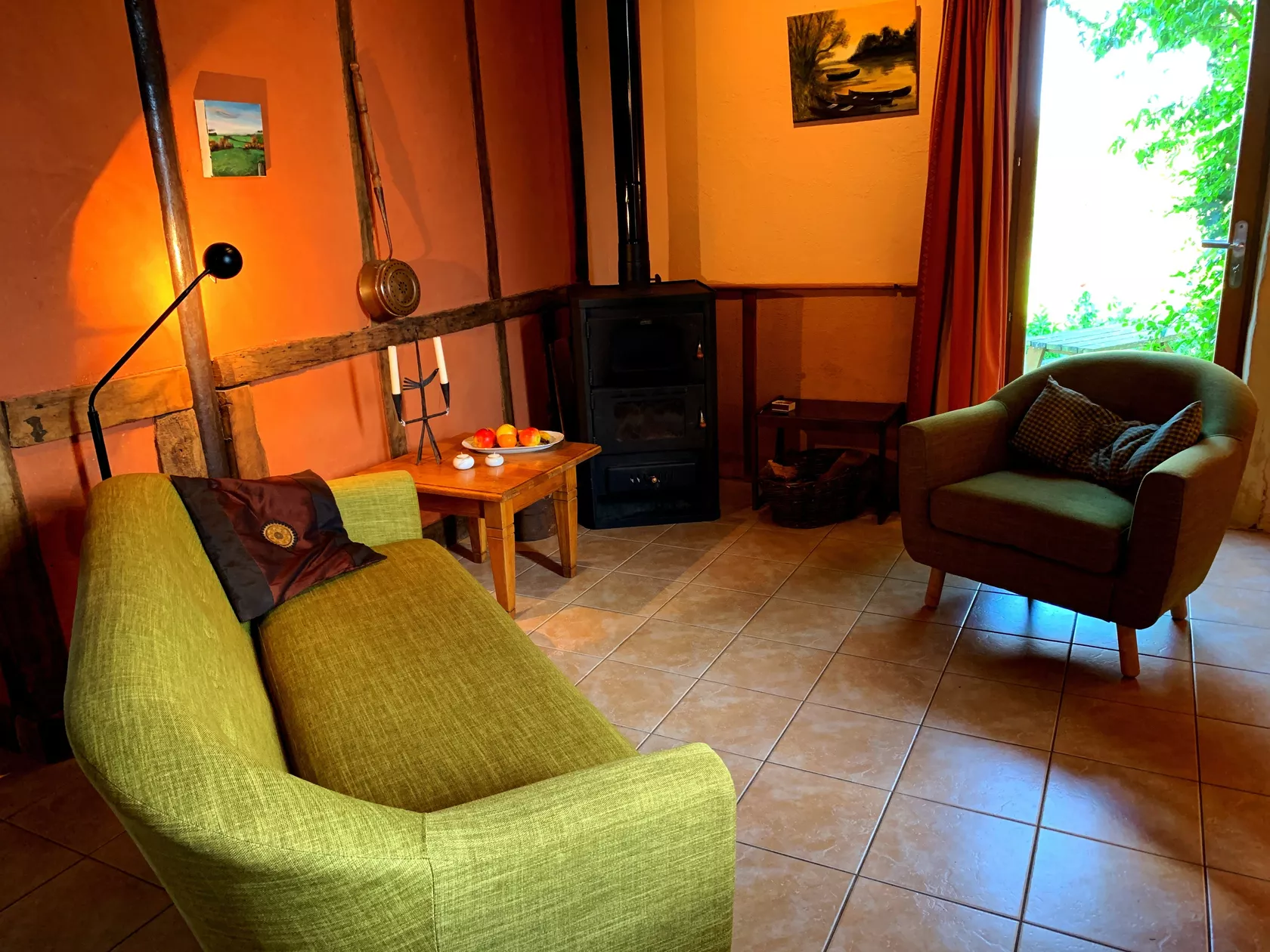 Fraai gelegen op een heuvel, aan het eind van een landweggetje. Vanuit het huisje heb je een prachtig uitzicht over het glooiende landschap. La Source is op de begane grond en een heel knusse gîte. Een houtkachel, met oven, aangesloten op de vloerverwarming over de gehele oppervlakte zorgt ervoor dat dit gezellige vakantiehuisje ook aangenaam warm is in het vroege voorjaar of in de herfstvakantie.