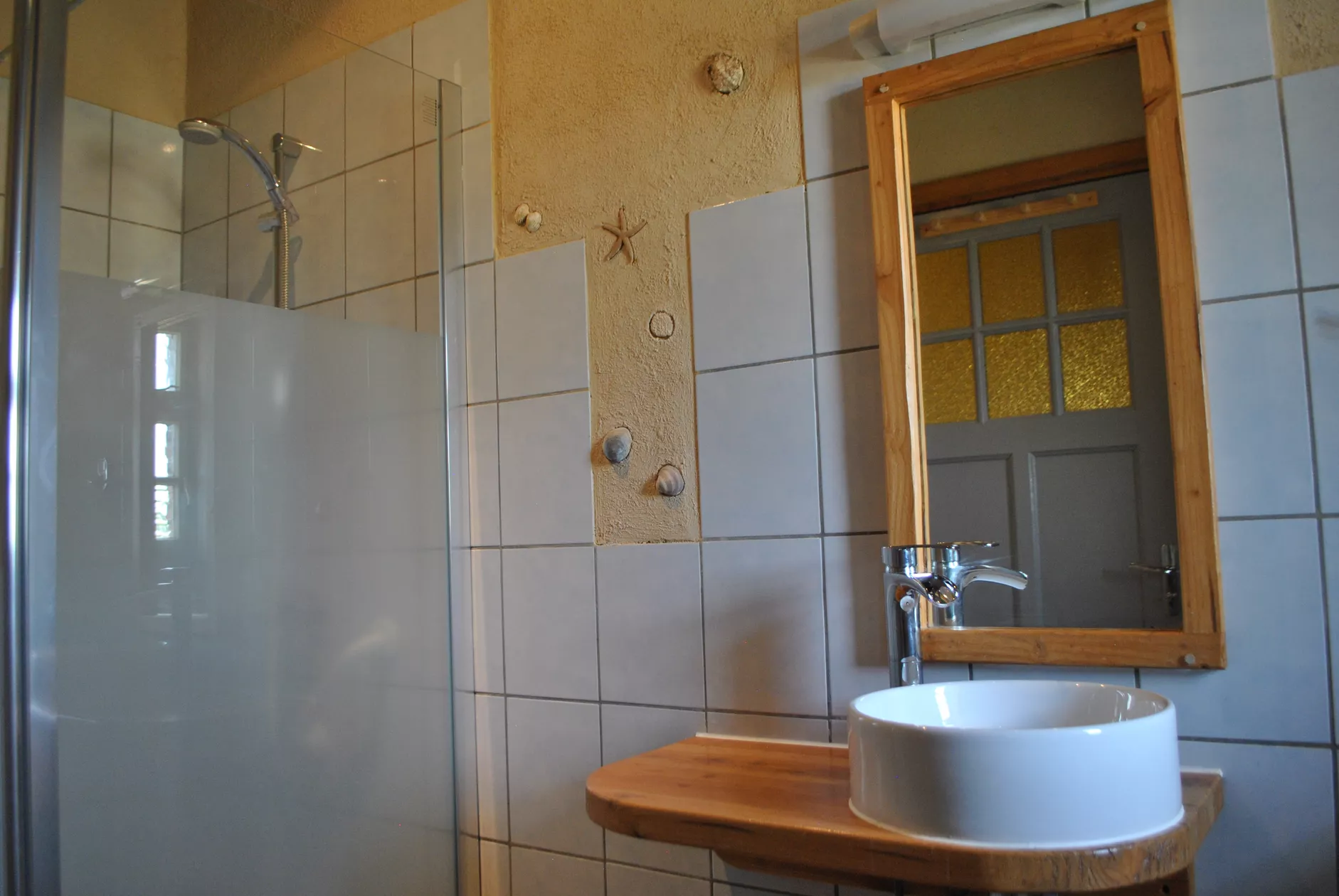 Deze gîte is tevens geschikt voor minder valide mensen. De keuken is helemaal rolstoelvriendelijk en wij installeren desgewenst oprij platen en een douche stoel. Het toilet heeft een beugel.
