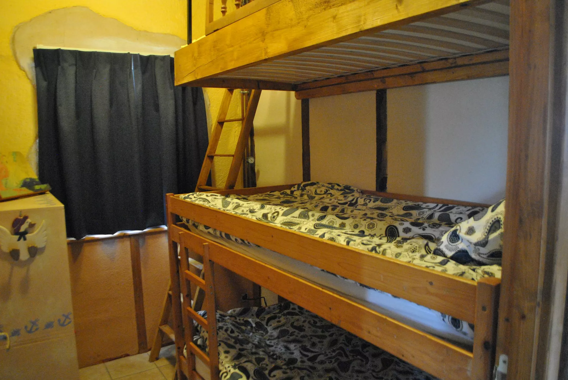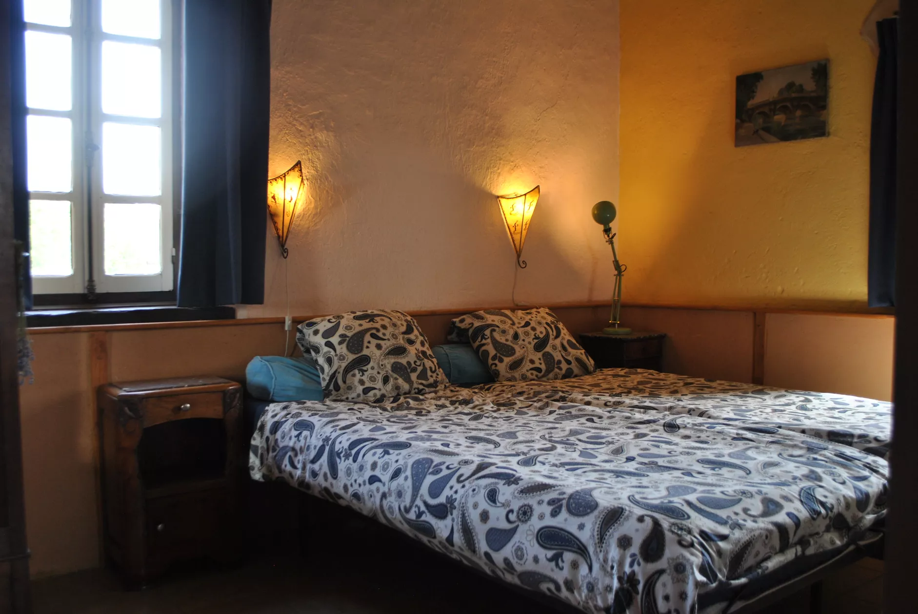 Door de stenen muren heeft het huisje een prettig binnenklimaat, zelfs tijdens de warme zomerdagen. Het huisje heeft een ruime woonkamer met open keuken. De keuken is voorzien van een gasfornuis, koel- en vriescombinatie, oven en een koffiezetapparaat. Er is een slaapkamer voor twee personen en een kinderslaapkamer met een stapel van 3 eenpersoonsbedden.