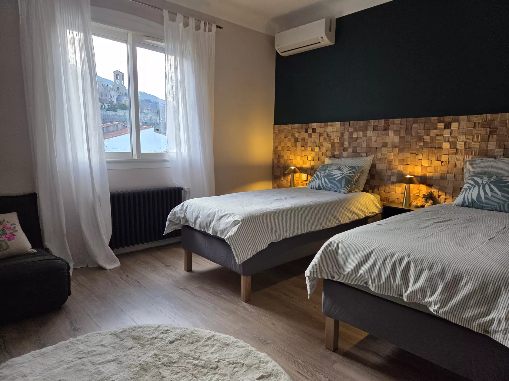 De tweede slaapkamer heeft twee kingsize bedden van 90×200 met matrastopper, een comfortabel extra bed en een grote, volledig uitgeruste inloopkast.