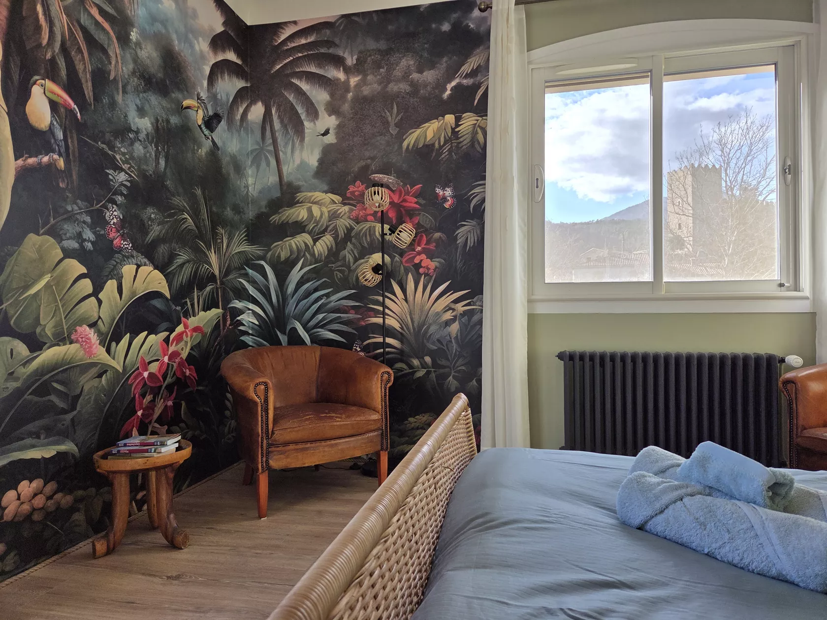 De ouderslaapkamer heeft een bed van 160×200, ononderbroken uitzicht op de bergen en een ingebouwde kleedkamer over de lengte van een muur.