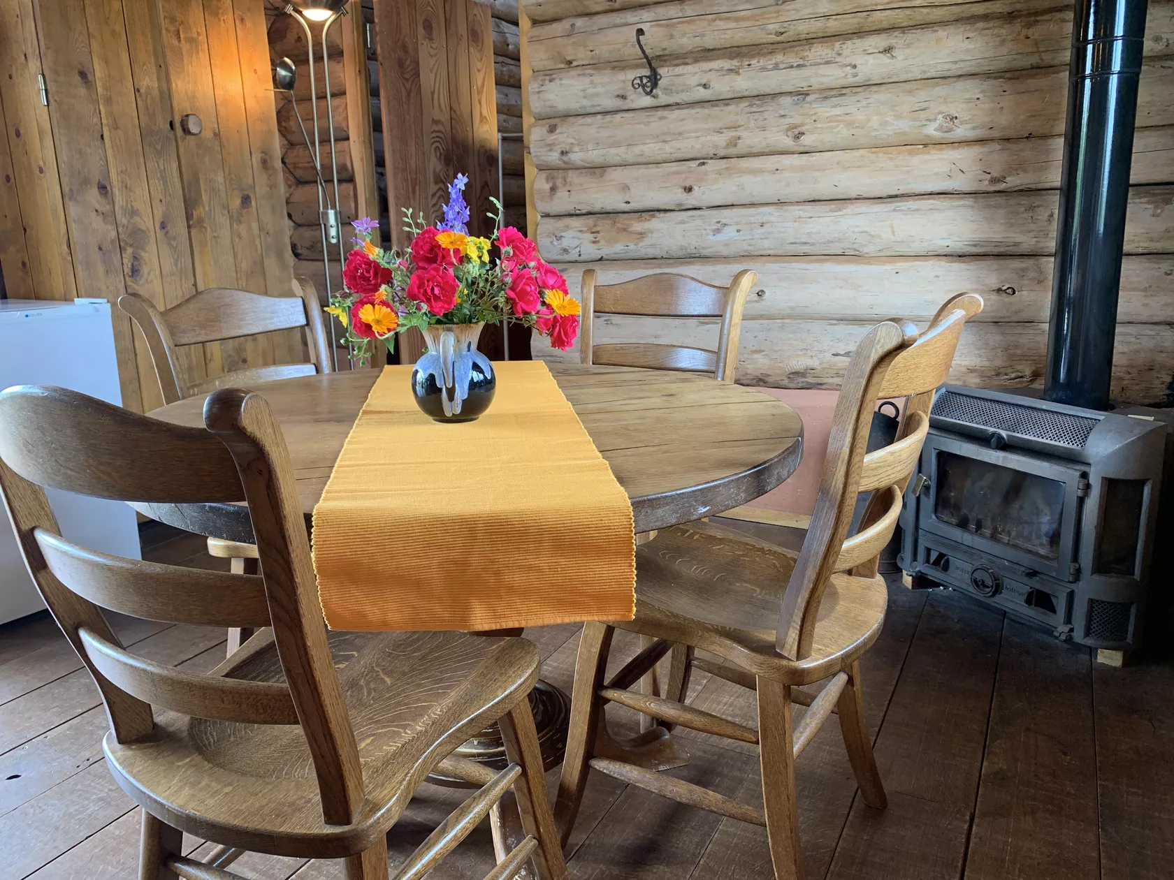 Binnen vindt u een knusse woonkamer met open keuken, perfect om samen te koken en te ontspannen. De indeling is praktisch en comfortabel: er zijn slaapplaatsen voor 2 tot 5 personen, een volledig uitgeruste keuken en voldoende opbergruimte. 's Zomers blijft het binnen aangenaam koel, terwijl u in het voor- en naseizoen kunt genieten van een houtkachel voor een gezellige avond. Het overdekte terras nodigt uit om te ontspannen.
