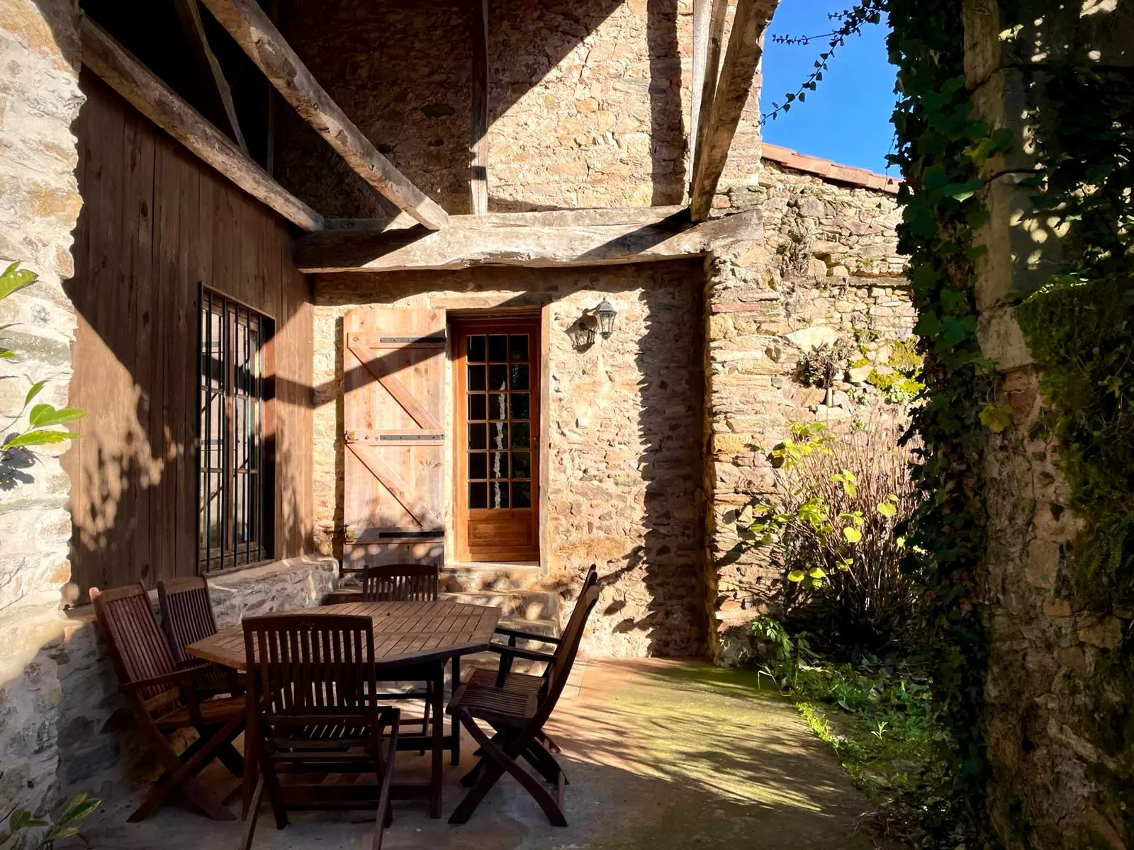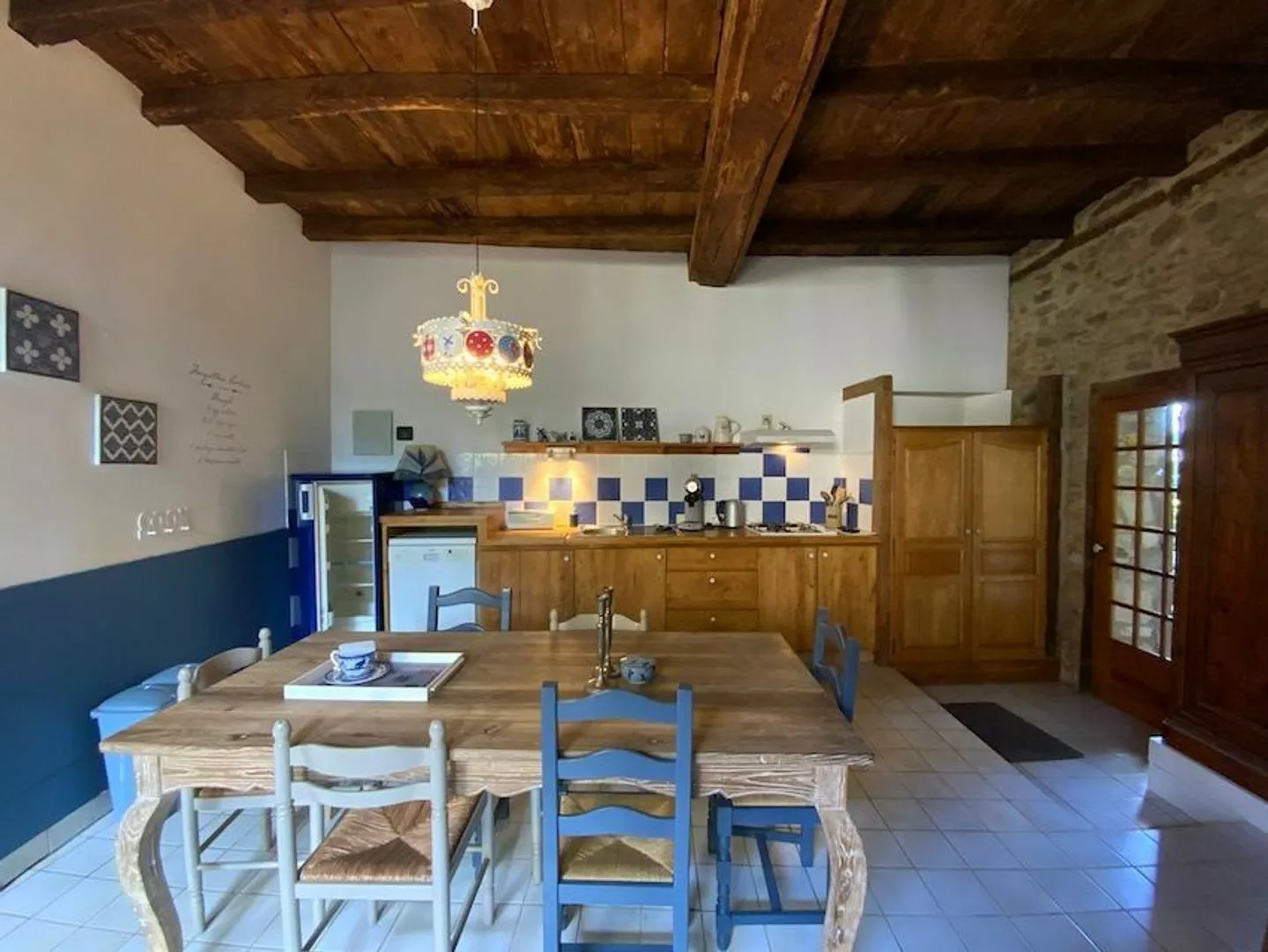 Deze ruime, stijlvolle vijfpersoons gîte is een fijne plek om te verblijven.