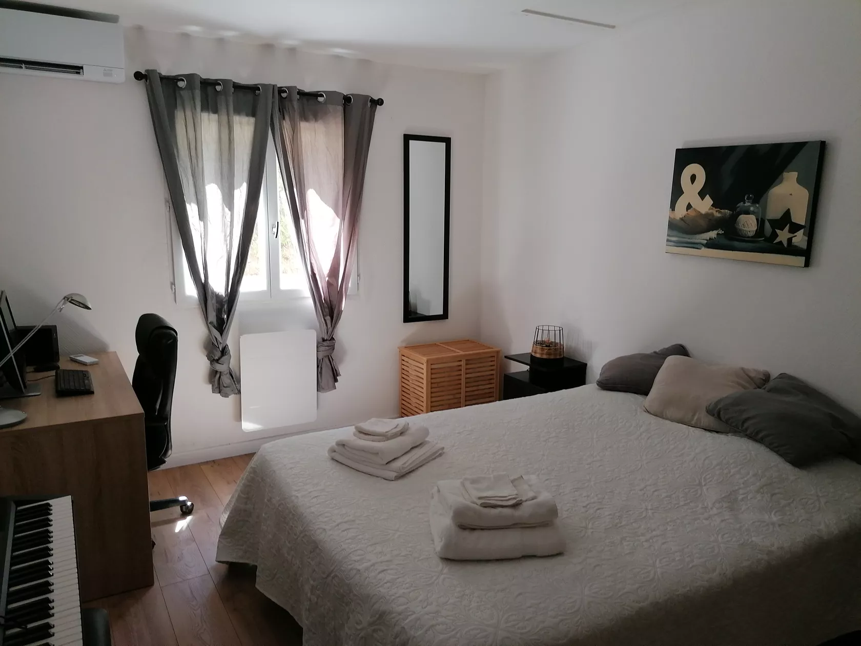 Airconditioning in woonkamer en slaapkamers.