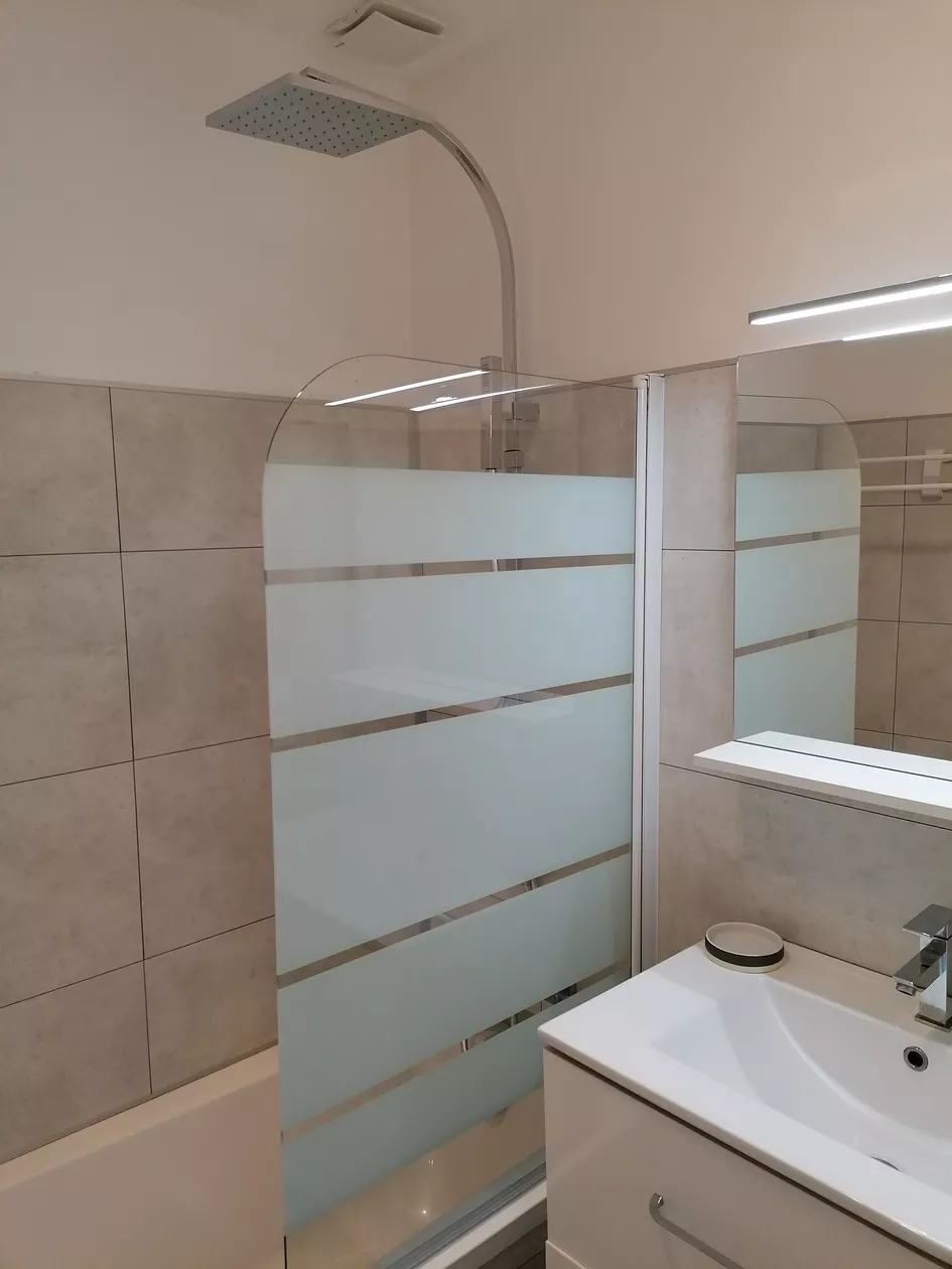 Badkamer en aparte WC. Veiligheidsbar in WC en badkamer.