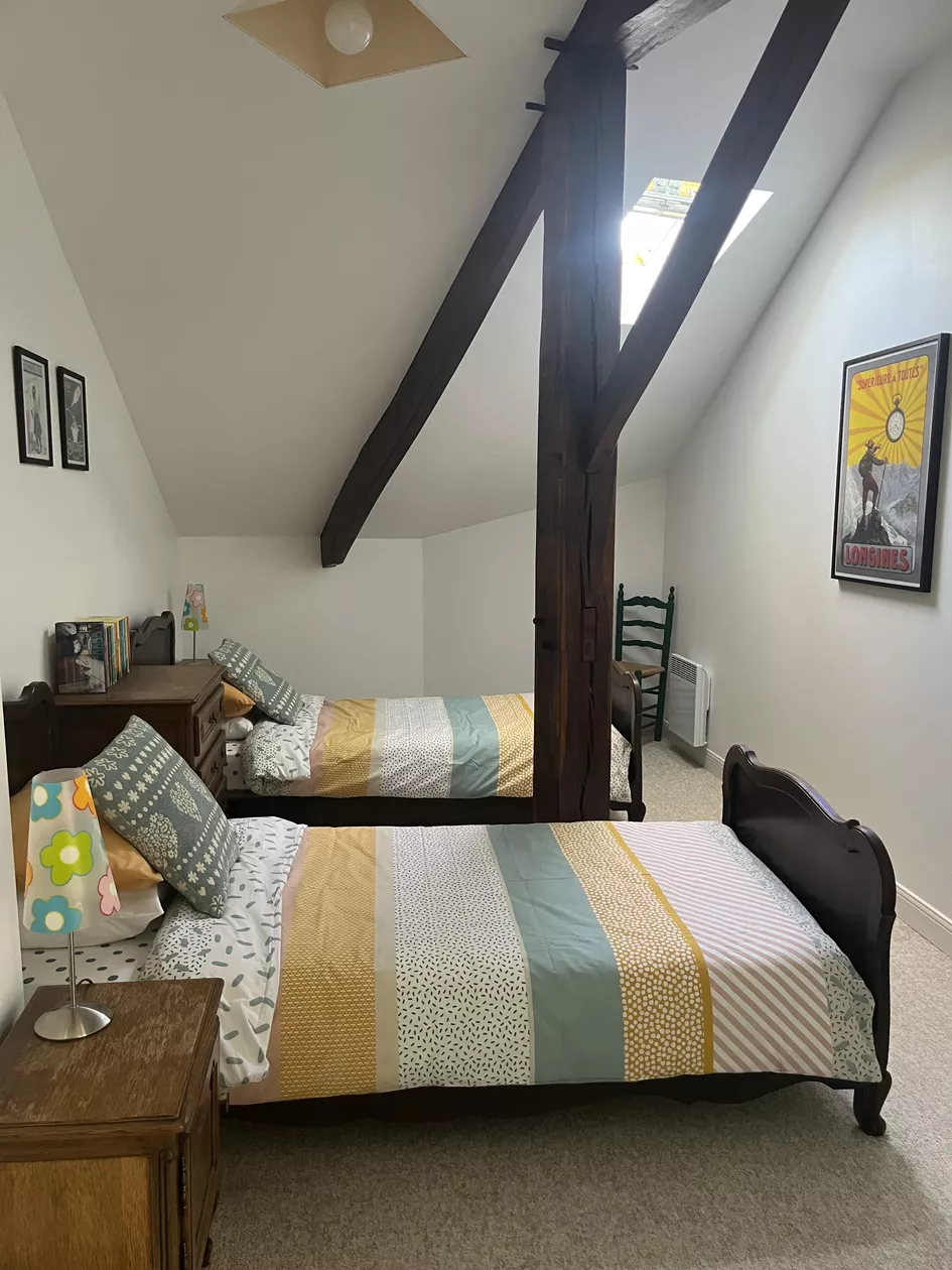 Onze grote gîte met 2 slaapkamers is een ideaal vakantiehuis voor maximaal 5 personen en heeft 1 tweepersoonsbed, 2 eenpersoonsbedden en een slaapbank voor 1 persoon beneden. Er zijn 2 badkamers op de bovenverdieping, waarvan één ruime badkamer met bad en de andere met douche. U kunt ook gratis gebruikmaken van wifi, beddengoed en handdoeken worden gratis verstrekt.