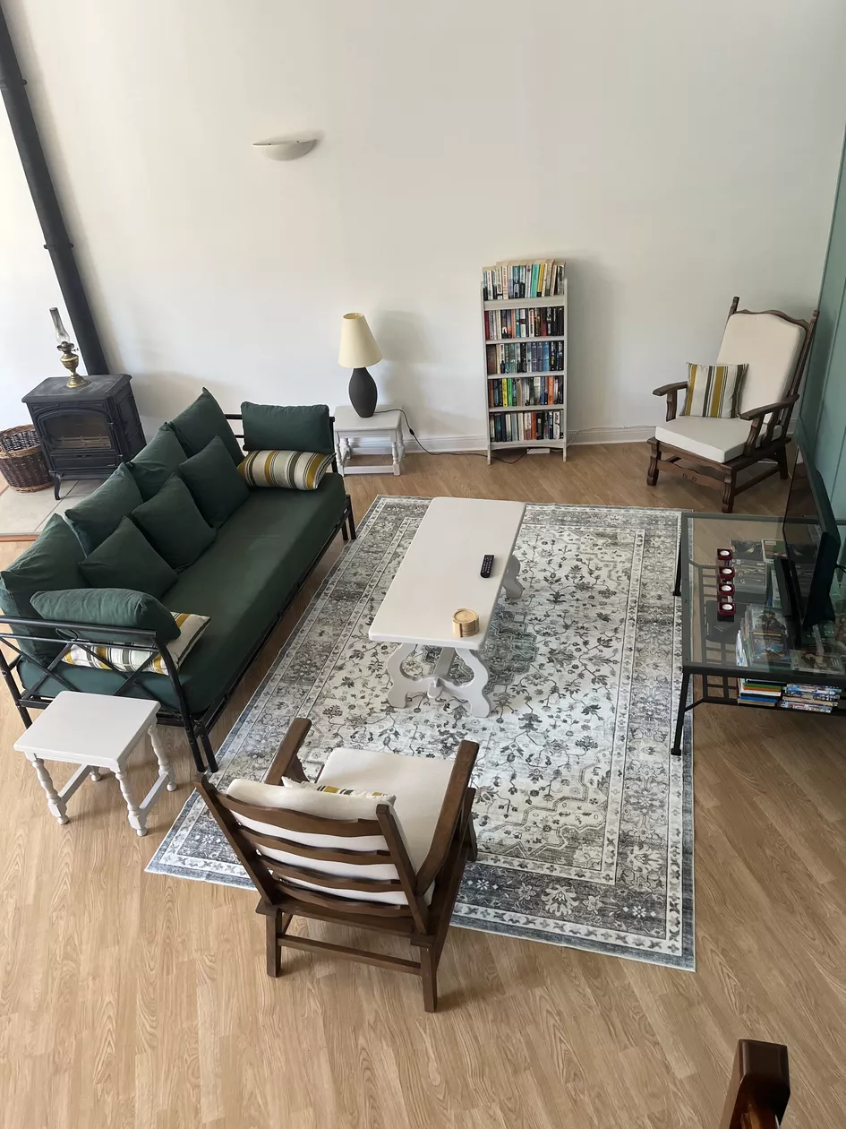 Een comfortabele woonkamer voor het hele gezin en een assortiment boeken, dvd's en spelletjes voor als het weer niet zo goed is, en niet te vergeten een houtkachel voor de koudere dagen. Voor extra comfort en gemak is er een toilet beneden.