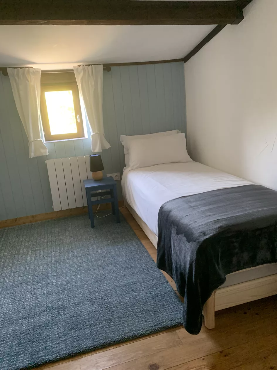 Slaapkamer 3 - eenpersoonsbed 90cm x 200cm Het is mogelijk om 2 eenpersoonsbedden van 80cm x 200cm te plaatsen, maar dit wordt niet aangeraden omdat het een kleine kamer is, maar wel goed voor jonge kinderen.