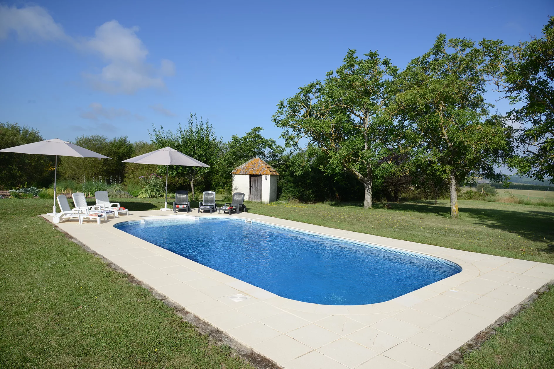 Gite met drie slaapkamers voor 5 (optie voor 6 indien kinderen) personen met veel buitenruimte en een exclusief ingegraven zwembad.