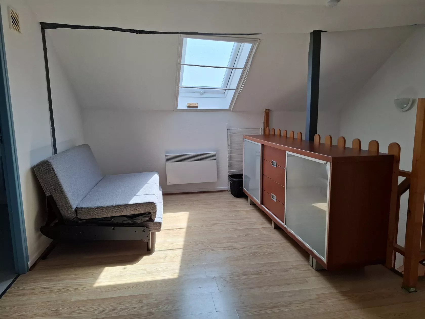 Boven zijn 2 slaapkamers, 1 met een twee persoons bed (160 x 200) en 1 met 2 losse bedden (80 x 190). Op de overloop staat een twee persoons slaapbank met topper, (140 x 190).