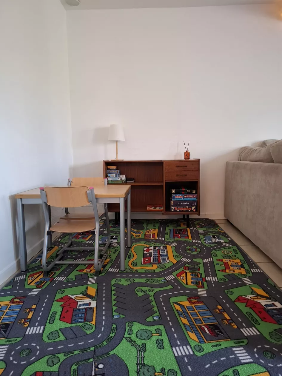 Kinderbedje en kinderstoel zijn aanwezig..
