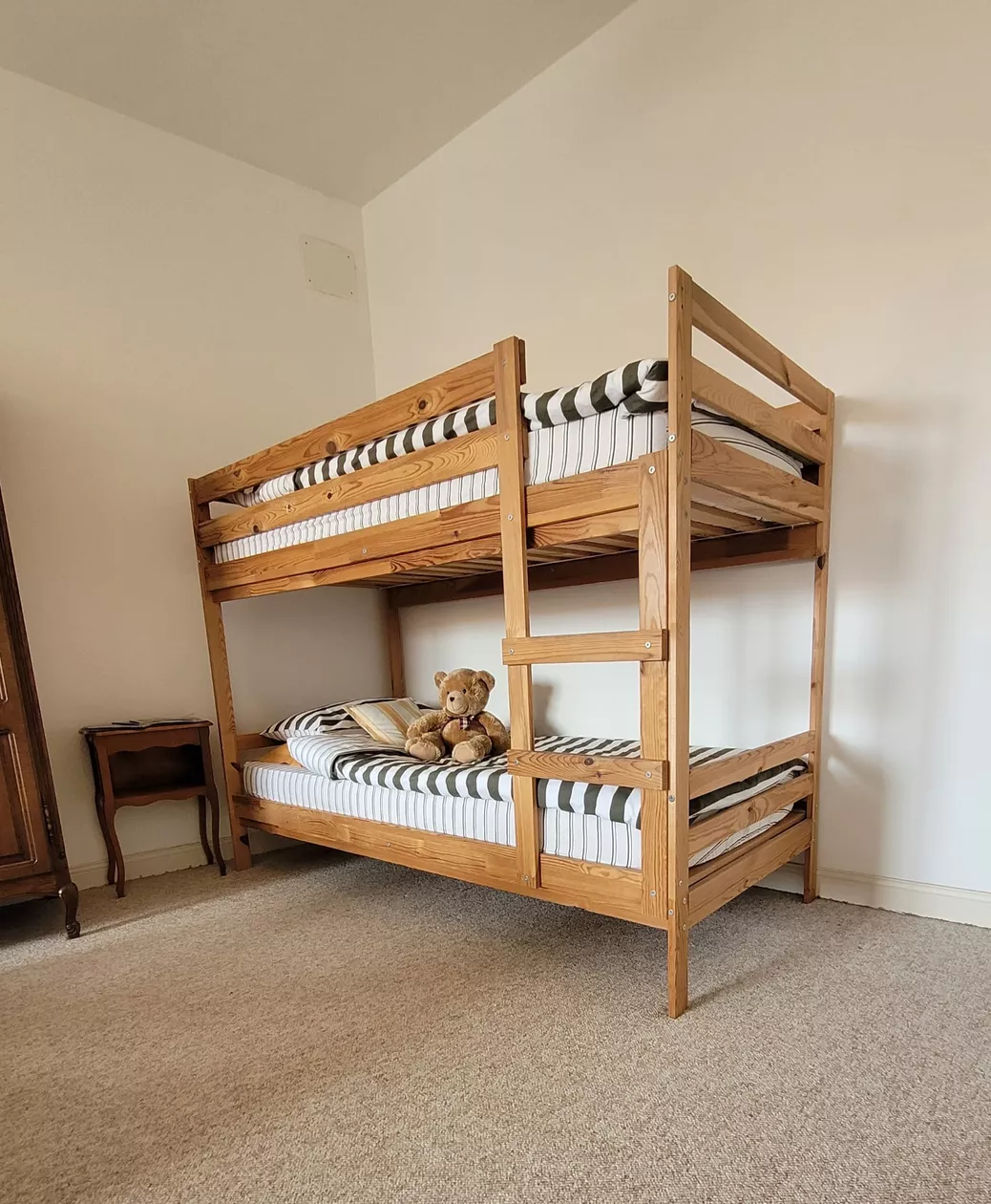 Ons grote huisje met 2 slaapkamers is een ideaal vakantiehuis voor maximaal 6 personen en heeft 1 tweepersoonsbed, 2 eenpersoonsbedden en stapelbedden. Er zijn 2 badkamers op de bovenverdieping, een ruime badkamer met een bad en een met een douche. U kunt ook gratis gebruikmaken van wifi, beddengoed en handdoeken worden gratis verstrekt.
