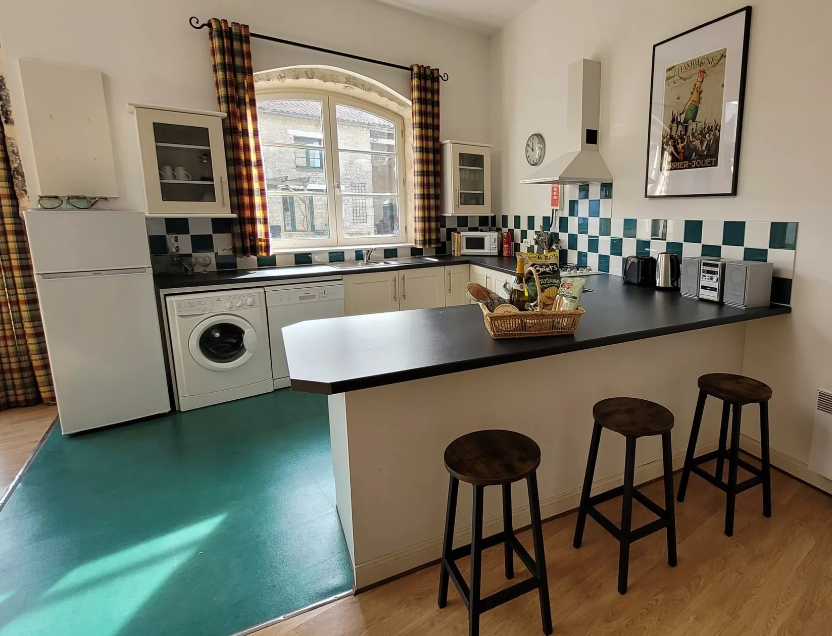 Op de begane grond vindt u een goed uitgeruste open keuken met alles wat u nodig heeft voor uw verblijf.
