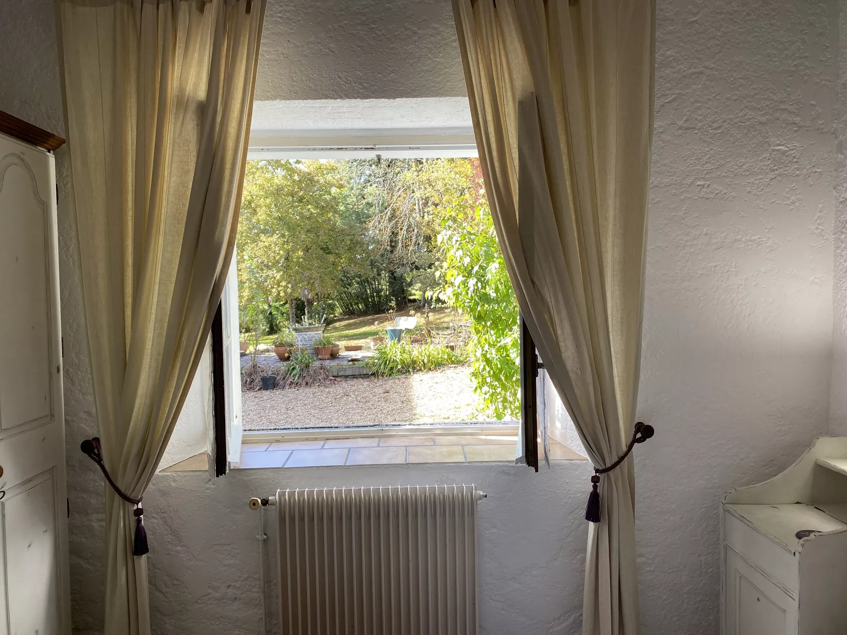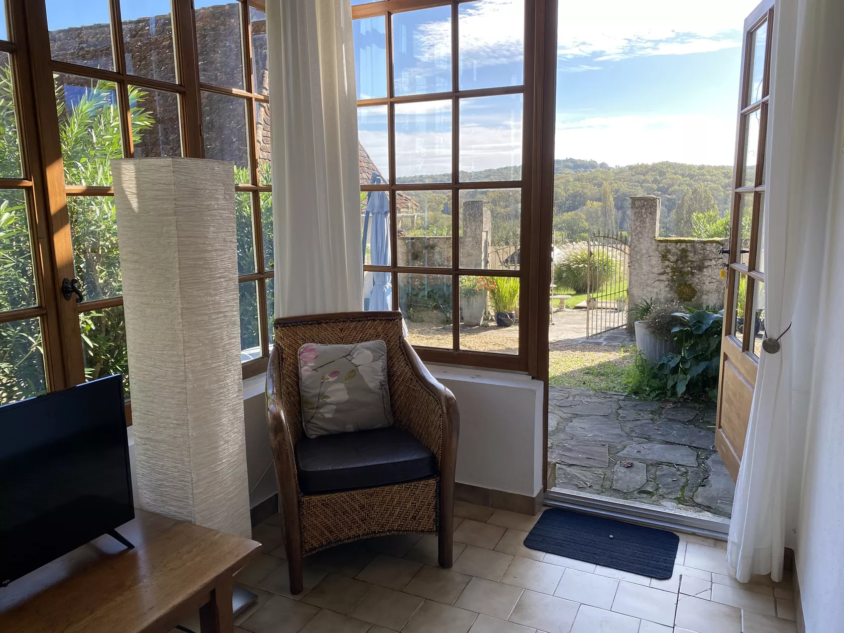 Deze charmante Béarnaise woning ligt tussen het landhuis en het gemeenschappelijke zwembad en is ideaal voor koppels of gezinnen met kleine kinderen. Het huis biedt 4 slaapplaatsen in een tweepersoonsslaapkamer met een kingsize bed en een slaapkamer met twee aparte bedden. Beide kamers delen een doucheruimte en een apart toilet. Beddengoed van goede kwaliteit en bad- en zwembadhanddoeken zijn inbegrepen.