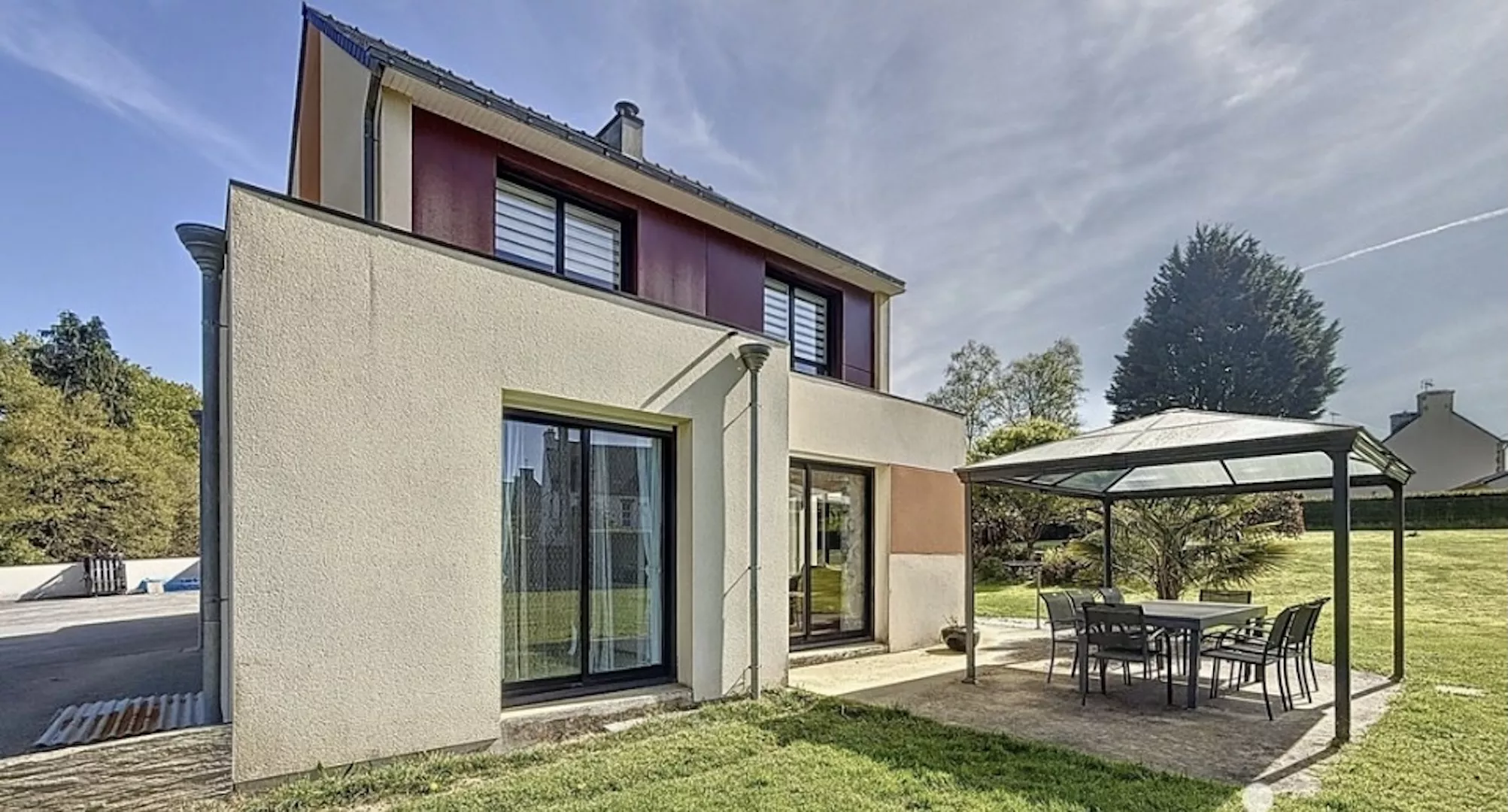 Buiten met terras en omheinde tuin uitgerust met barbecue en tuinmeubels.