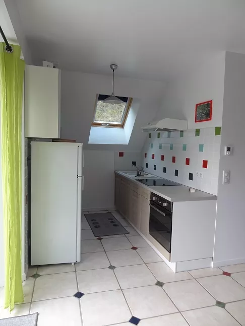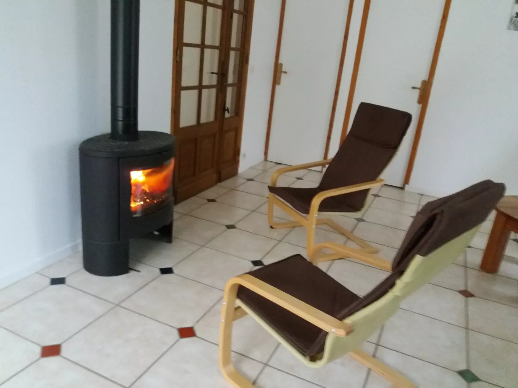 * Vrijstaand huis op één verdieping, 2 slaapkamers, badkamer met douche en wc, keuken die uitkomt op een lichte woonkamer met houtkachel.