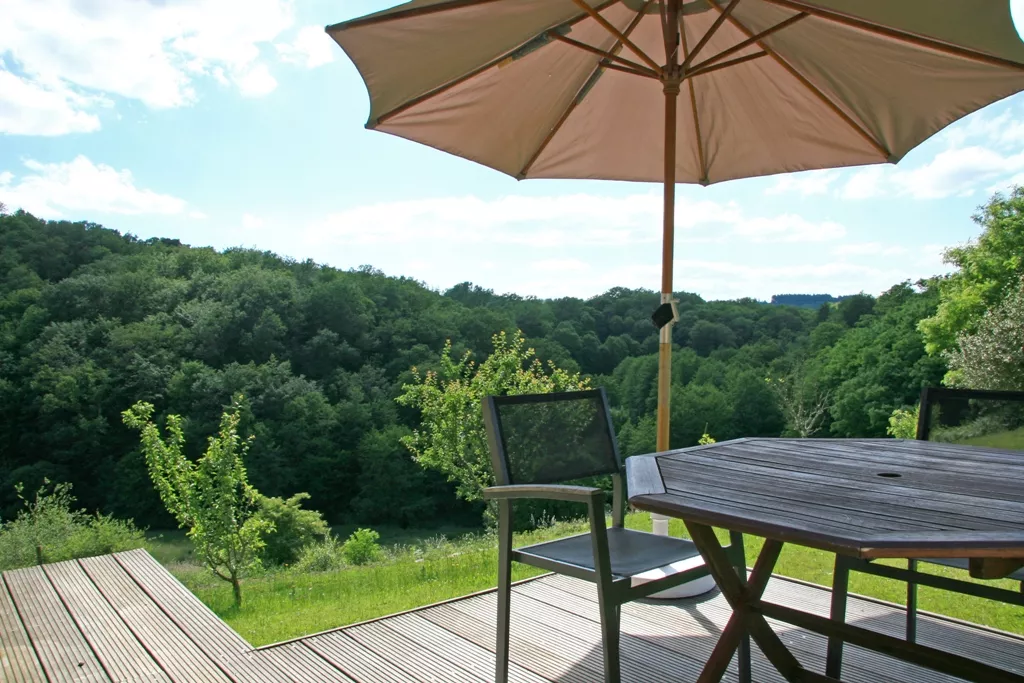 Op uw privéterras met tuinstoelen en ligbedden, zit u heerlijk vrij en heeft u een schitterend uitzicht op het dal, waar het riviertje 'de Gorette' zachtjes kabbelt.