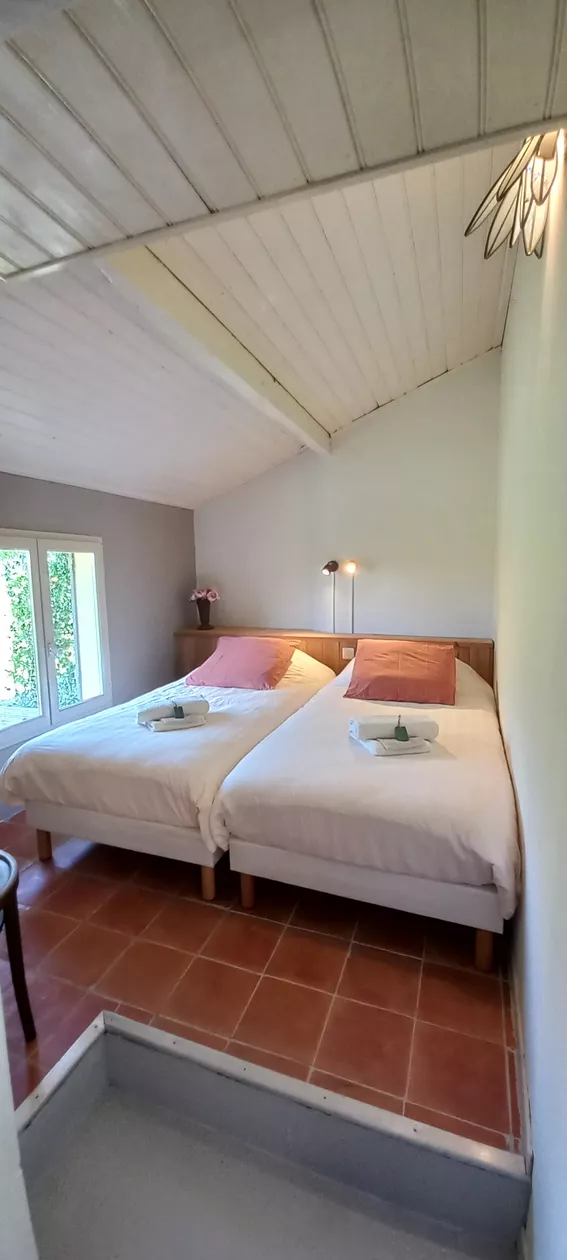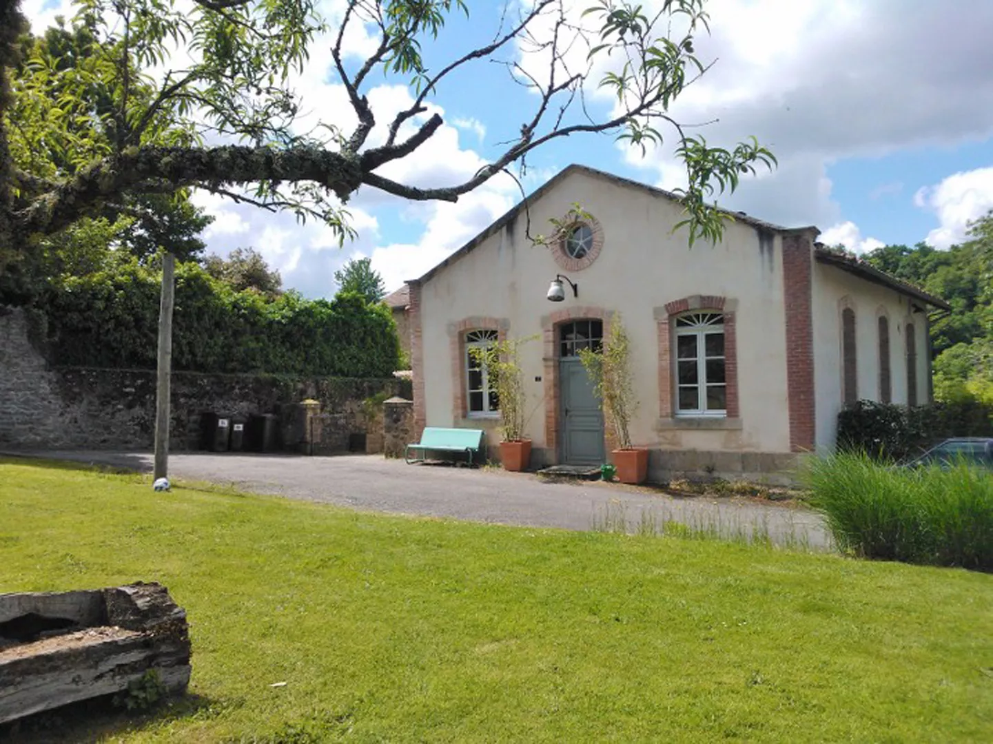 De vrijstaande schoolkantine op het terrein is verbouwd tot een sfeervolle, compleet ingerichte gîte.